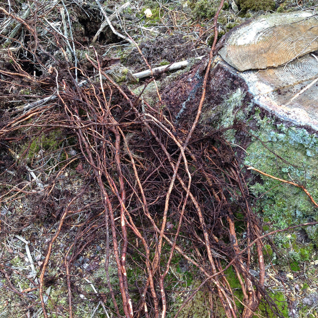 上部は松の根でかがって留めています。根が乾燥するときに発生する縮みで固く締り、強度が増します。