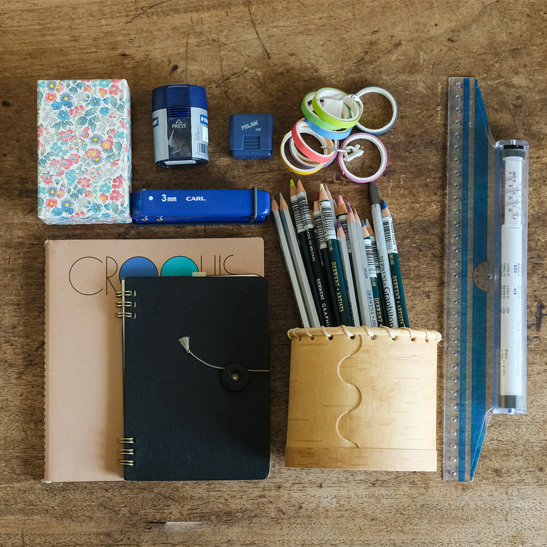 雑多になってしまいがちな文房具も、立てておくだけでどこかまとまりのあるものに。やさしいお道具立てを見ていたらお気に入りのペンが目に入り、誰かに気持ちを伝えたくなる。そんな素敵な連鎖が起こりそう。▲ケース:ケースNo1