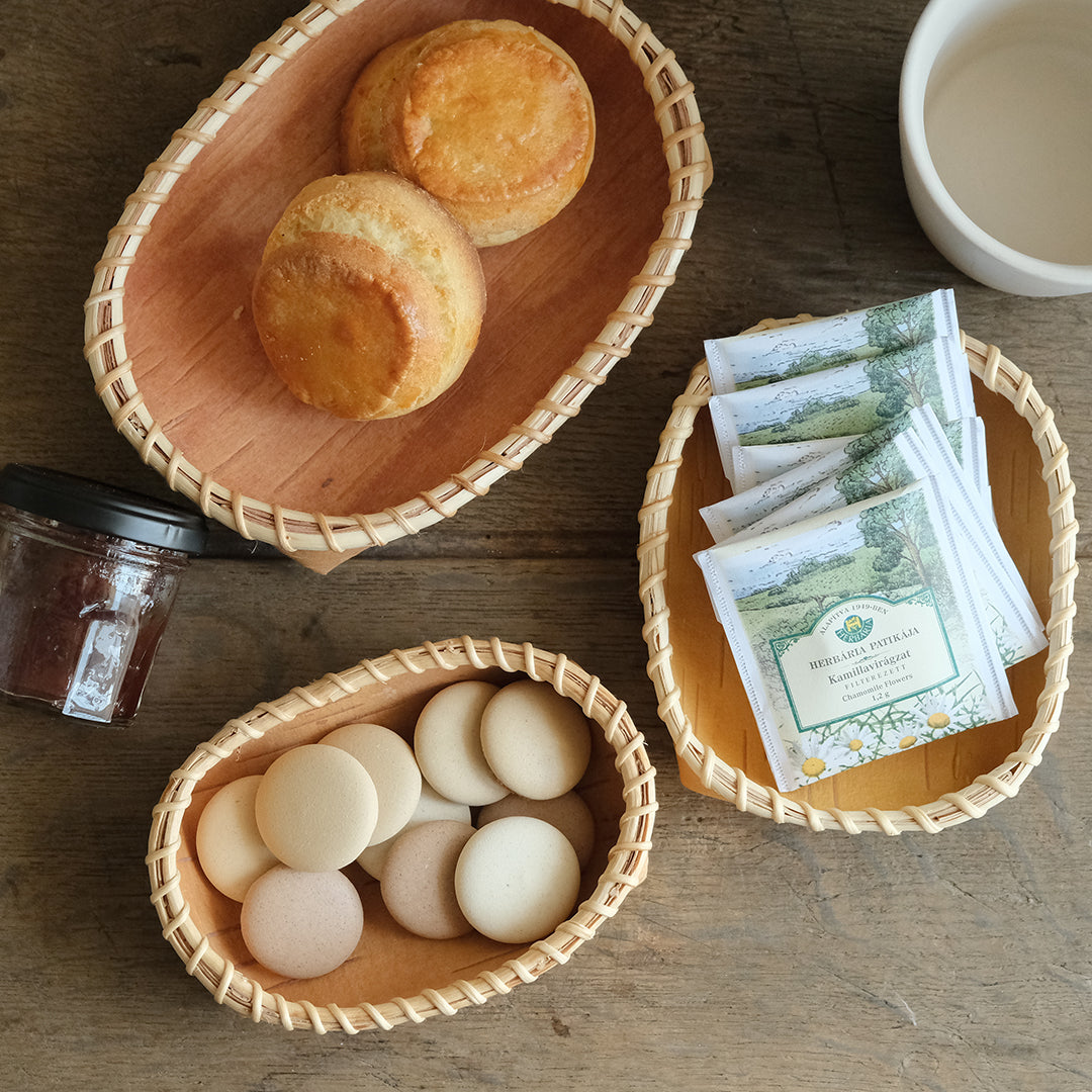 白樺が決めた大きさのかごには、そのサイズにぴったりのものが見つかるはず。自然の成り行きに任せて、お好みのものを載せてみて。