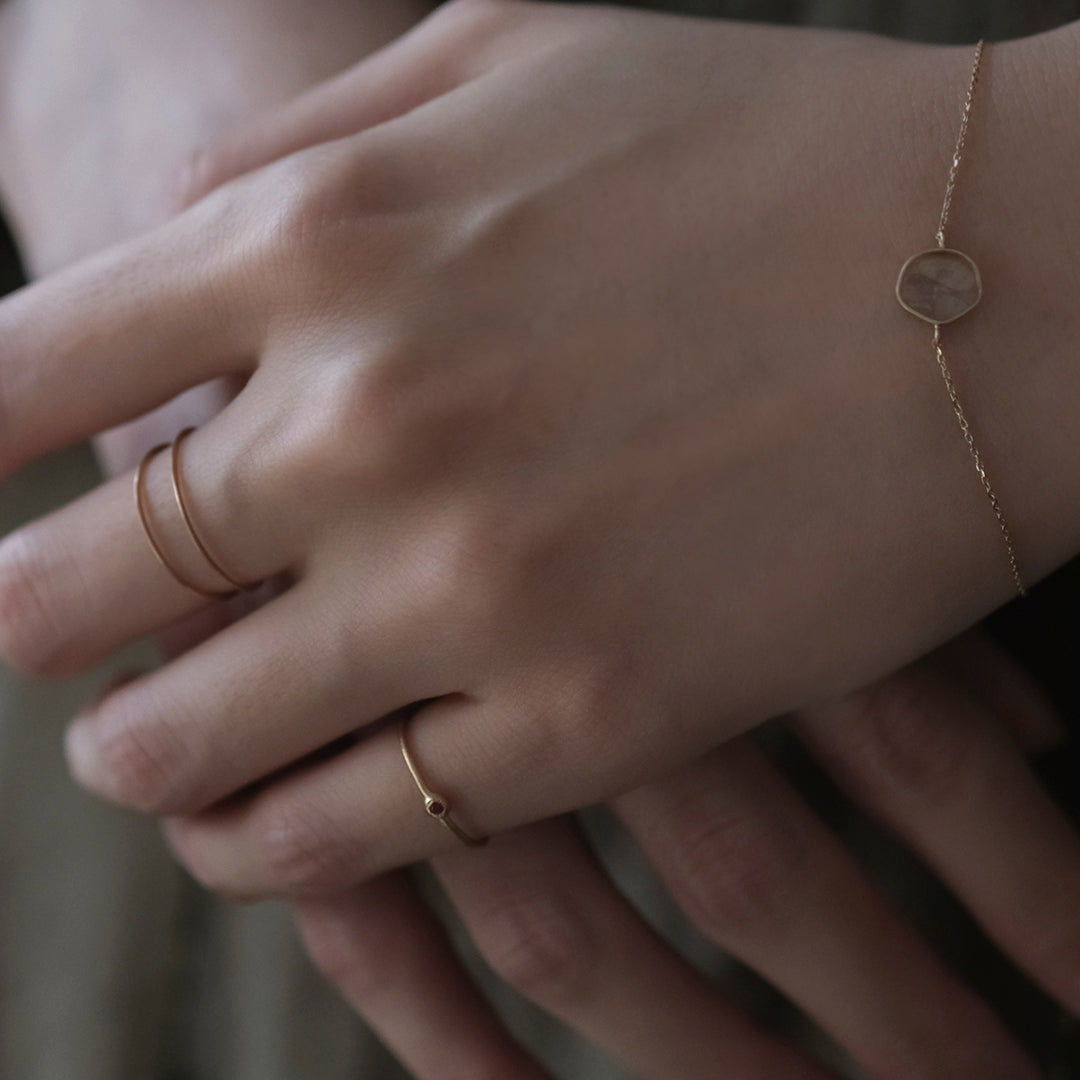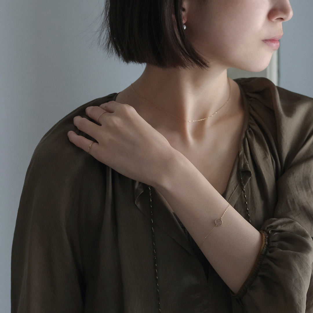 ブレスレットの重さは1gほど。身につけると身体の一部になったようなフィット感、毎日一緒に過ごしたくなるような軽やかなつけ心地です。
