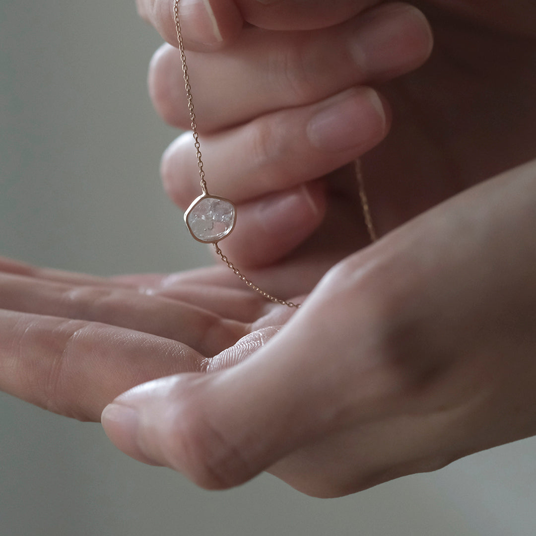 瑞々しく透明感のあるスライスダイヤのブレスレットは、光板に日の光が輝く風景をイメージしてつくられたもの。