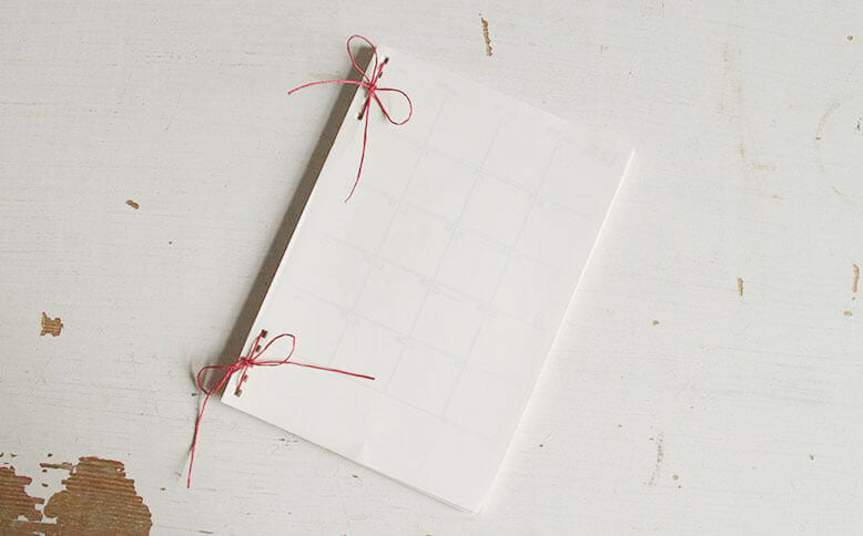 革の手帳をお送りいただくと、来年用の中紙をセットしてお送りします。手帳のカレンダータイプは月間のみか月間+週間を、フリーページは無地か方眼をご希望の中身をお選びください。