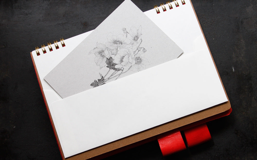 革ポケットをJOURNEYが手縫いでおつけします。何度出し入れしても傷む心配がなく、表紙とともに経年変化を楽しめます。※紙封筒のポケットは今回よりなくなりました。