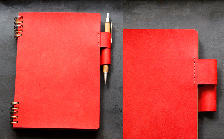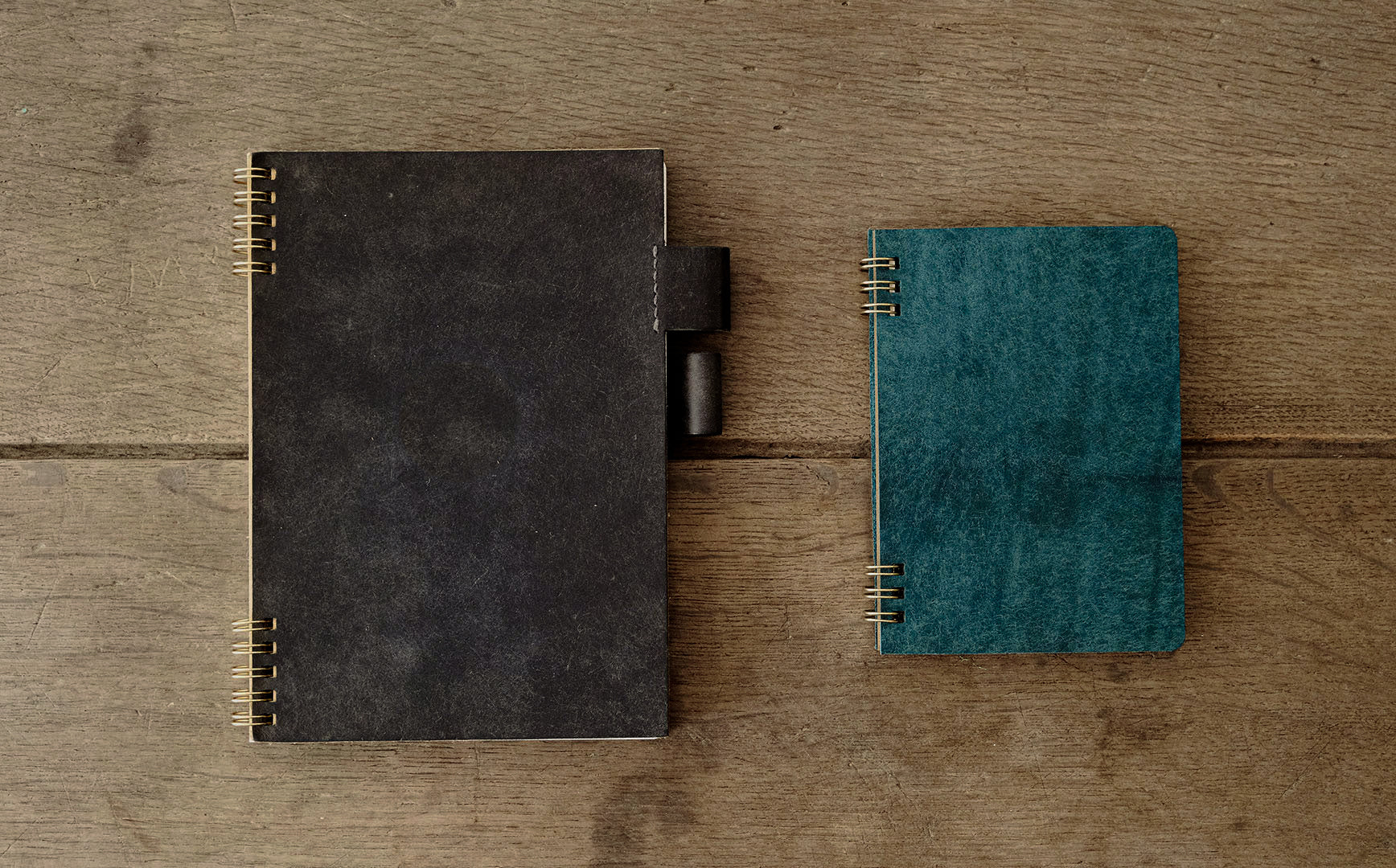 サイズは写真左:A5サイズ(こちらのページでご紹介しているもの)と、より持ち運びしやすい写真右:A6サイズの2つ。