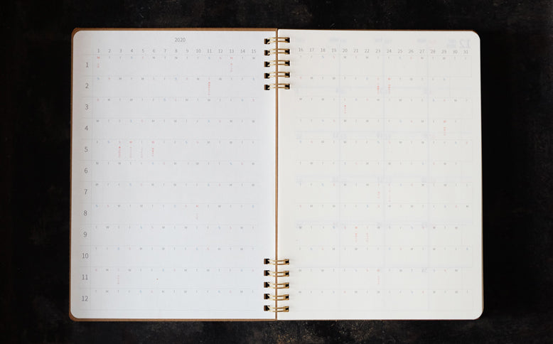 「月間のみ」「月間+週間」から、お好みのタイプを選べます。どちらのタイプも年間カレンダーがついてます。