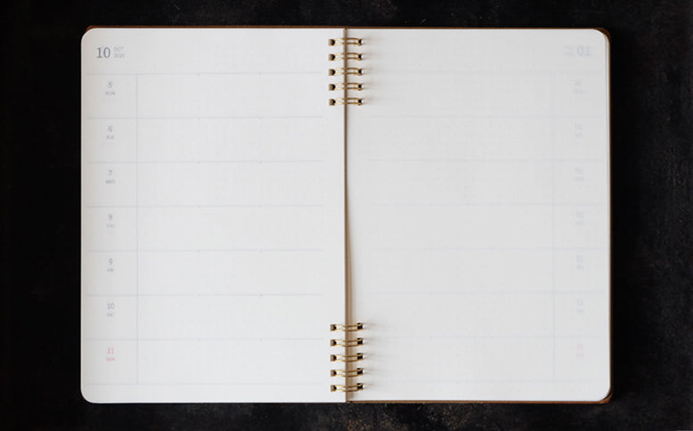 ▲「月間+週間」は2025年12月~2027年1月までの月間ページと、2025年12月29日週〜2027年1月4日週までの週間ページ、さらに白紙が10枚ついています