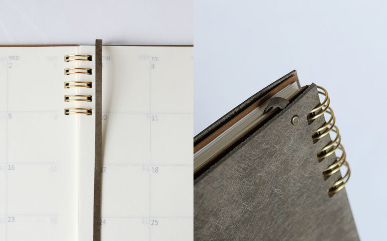 ひもでくるっと留めることができるので、かばんの中で手帳・ノートが開かず持ち運ぶことができます。