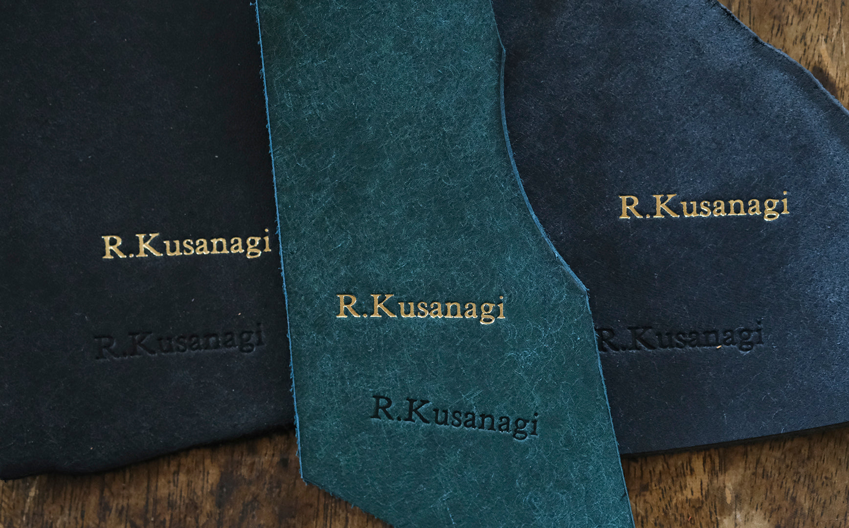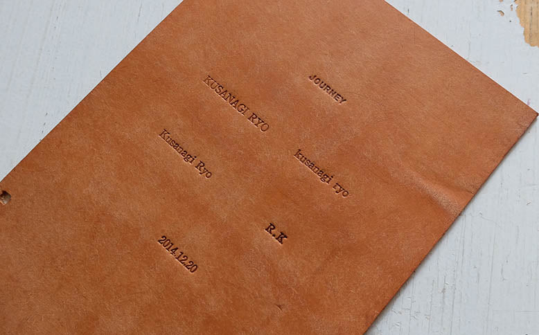 例えば、名前をいれたり、年号をいれたり、好きな言葉をいれたり。刻印をいれることができます。金色半艶の箔押しか、色を載せない素押しの2種類からお選びください。▲上が「箔押し」、下が「素押し」