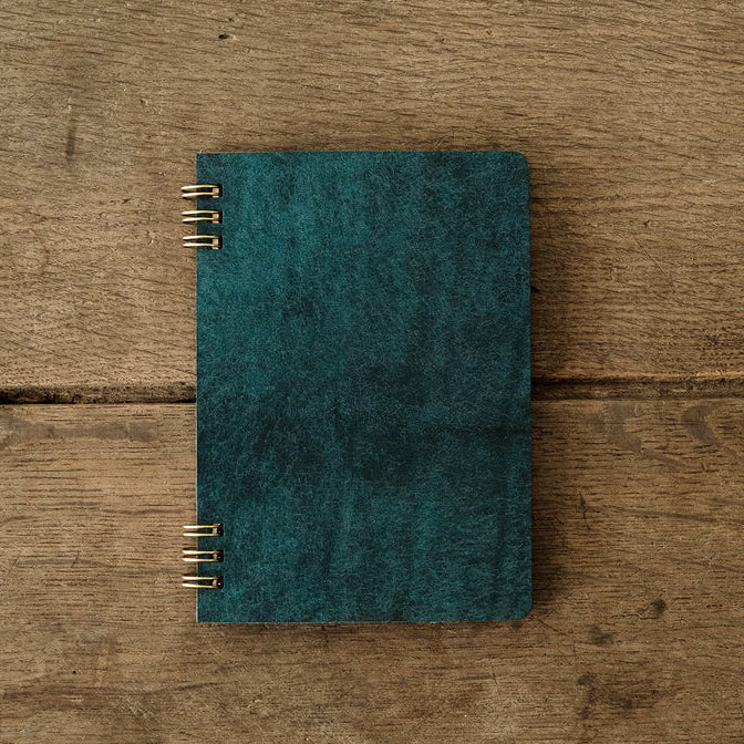 「旅人が持っていそうなノート、カフェで思いついたアイディアを書き留めるノート。革のカバーは使っていくうちにいい味が出て、中紙はなめらかな書き心地で自由な気持ちで綴ることができる」