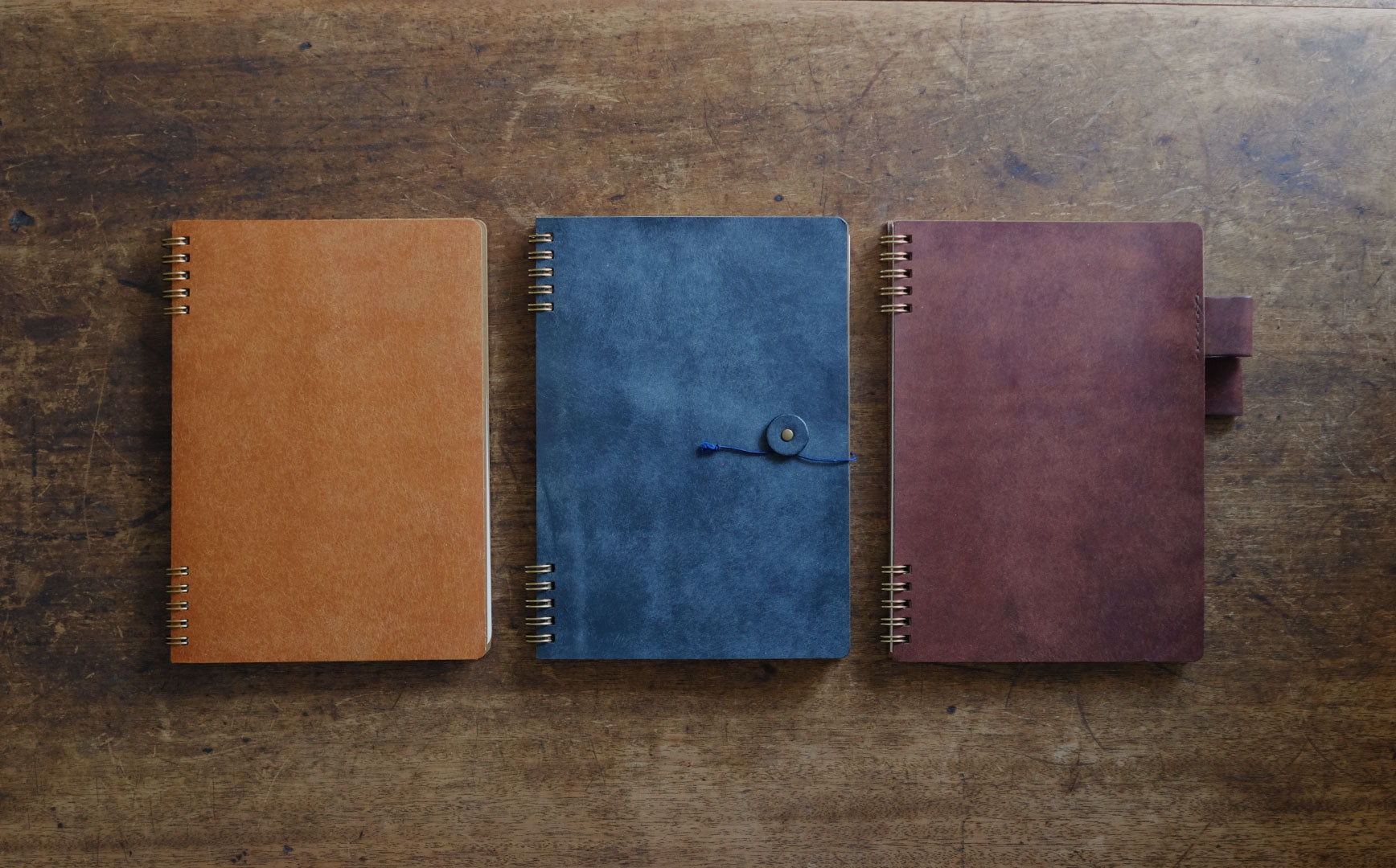 手帳は全て、リングでとじています。取り外しができるので、中紙を替えれば革の表紙はそのまま使いつづけることができます。