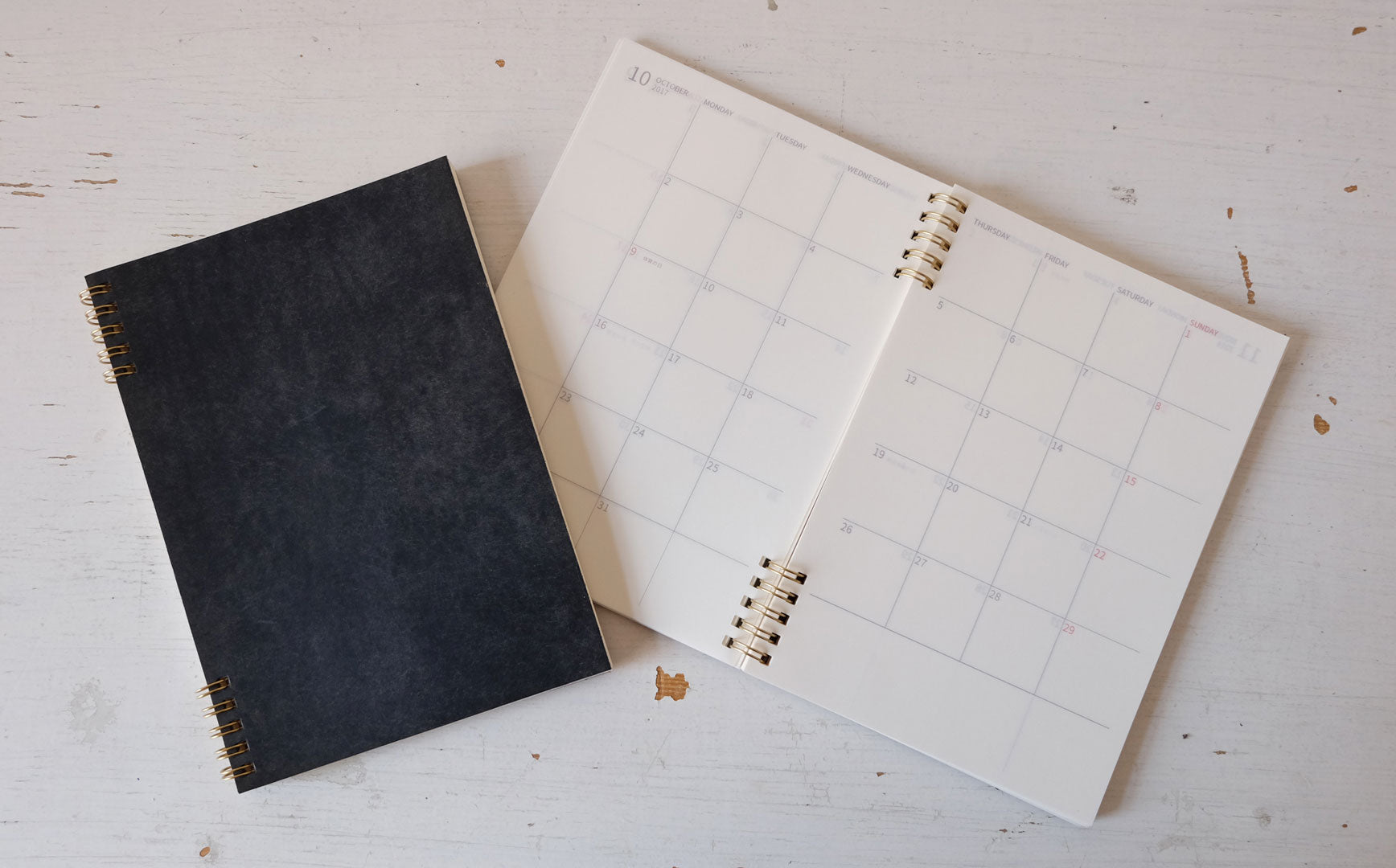 ▲「月間+週間」は2025年12月~2027年1月までの月間ページと、2025年12月29日週〜2027年1月4日週までの週間ページ、さらに白紙が10枚ついています