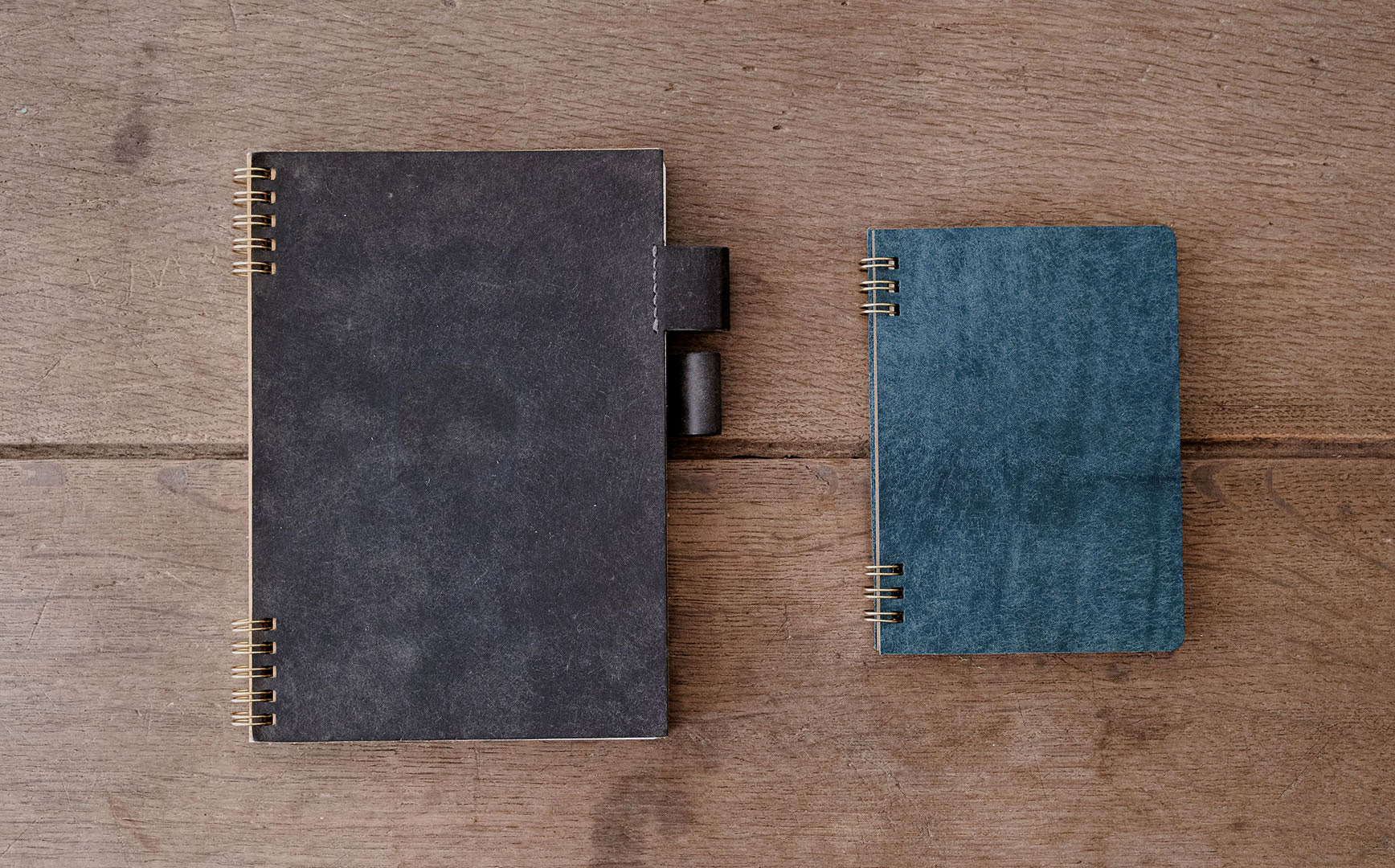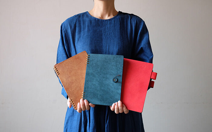 サイズは写真左:A5サイズ(こちらのページでご紹介しているもの)と、より持ち運びしやすい写真右:A6サイズの2つ。