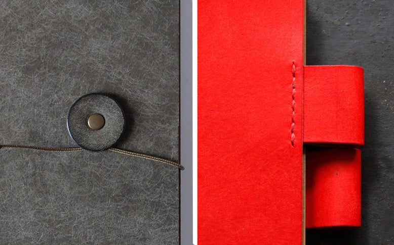 ひもでくるっと留めることができるので、かばんの中で手帳・ノートが開かず持ち運ぶことができます。