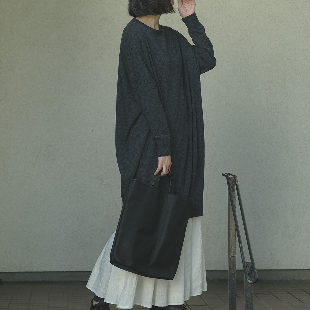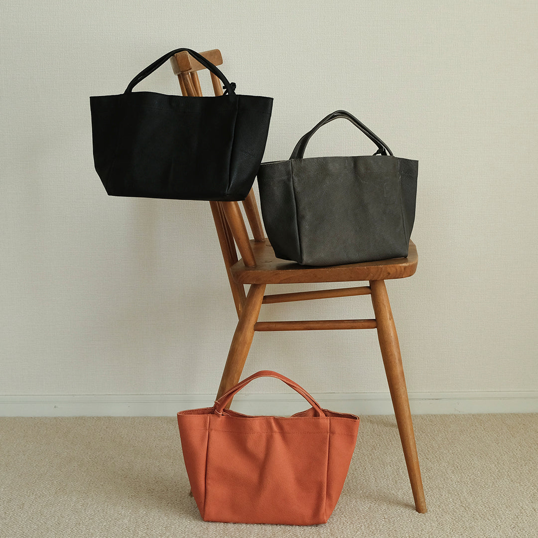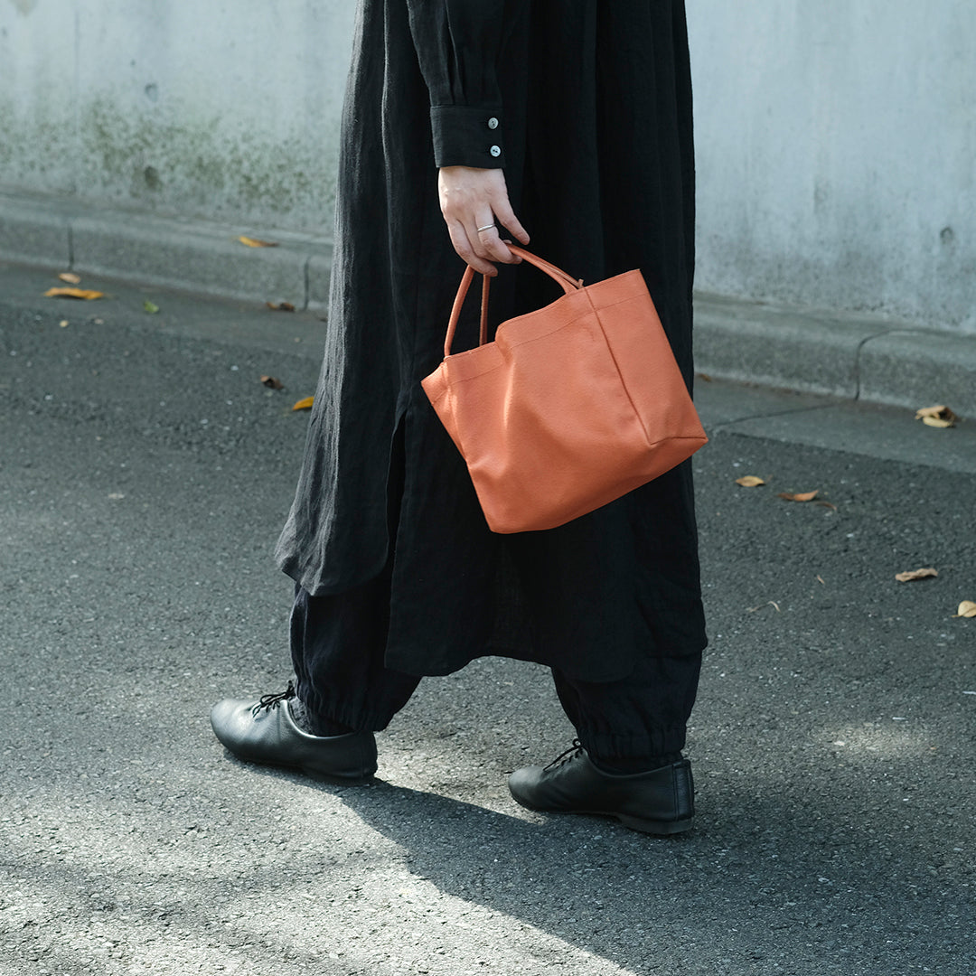 デザインはファスナーや金具がない潔さ。口を開けば中身が一目瞭然、必要なものがさっと取り出せるシンプル設計です。