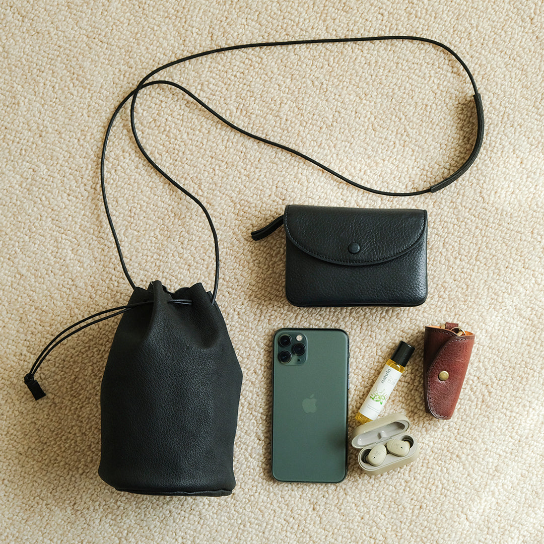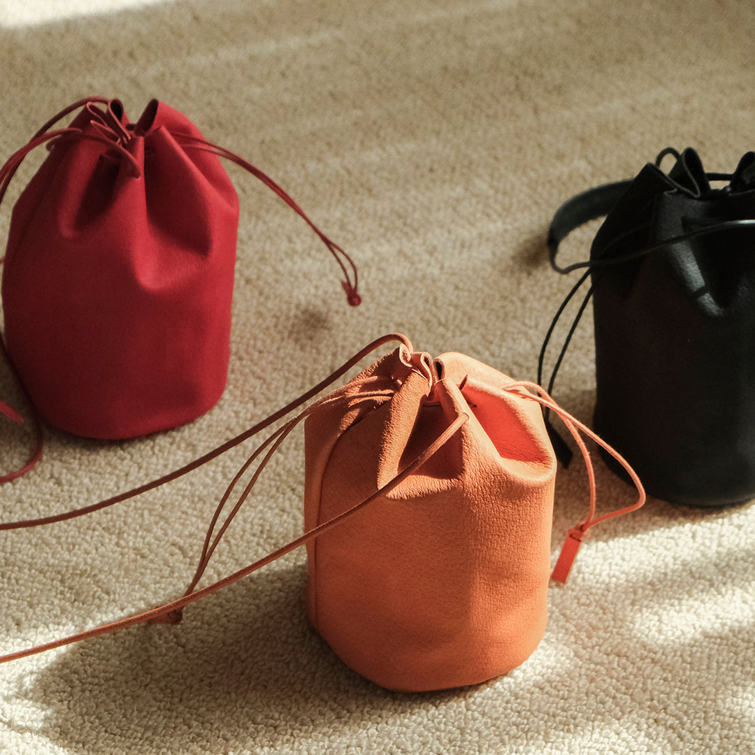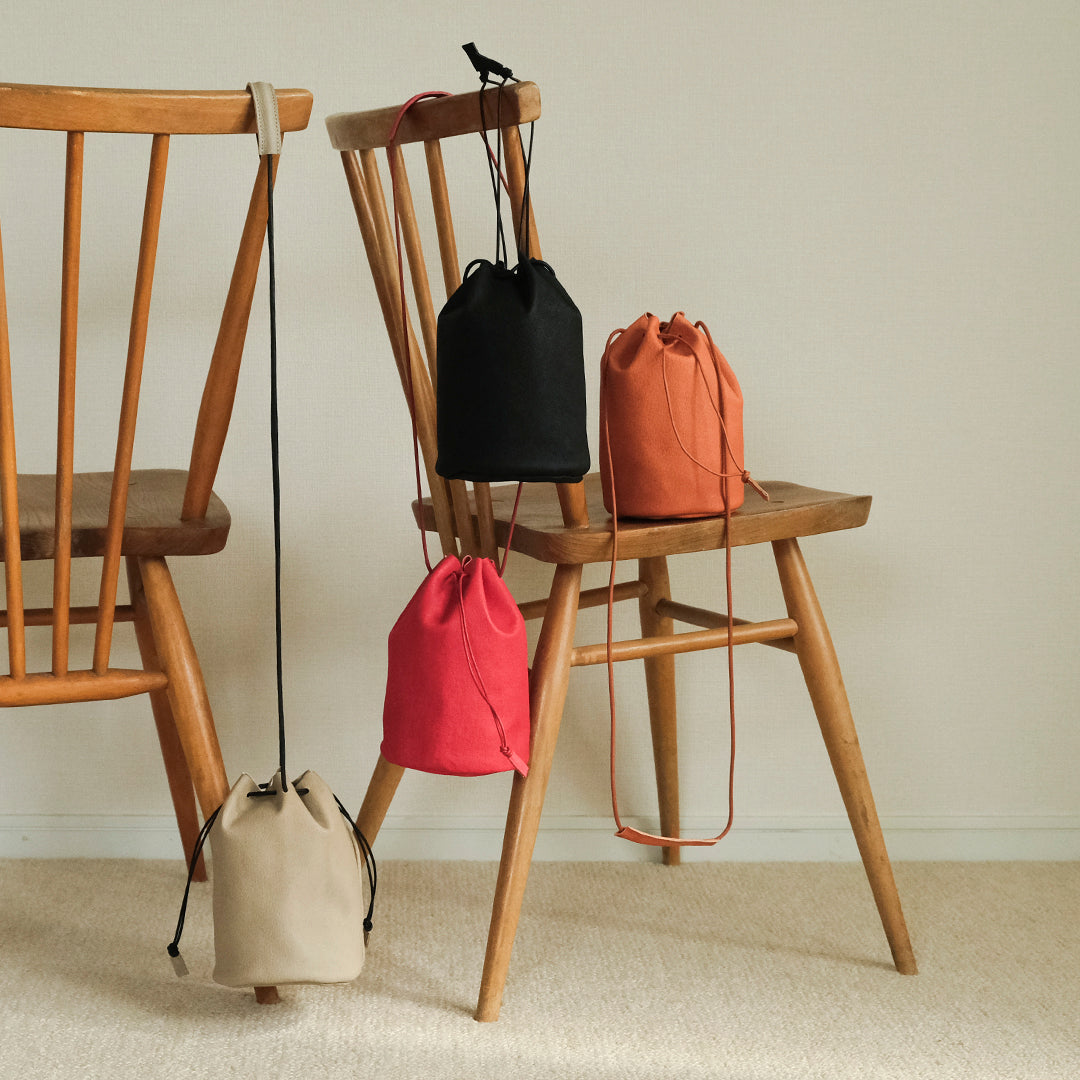 装いを彩る、国産ピッグスキンの巾着バッグ
