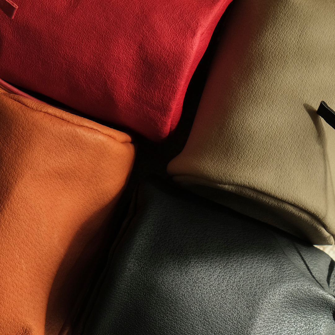 革作家園田明子さんが素材に選ぶのは国内でまかなえる天然皮革。そのままでは破棄されてしまう食肉の副産物を生かしたピッグスキンシリーズなど、未来につながるものづくりをしています。
