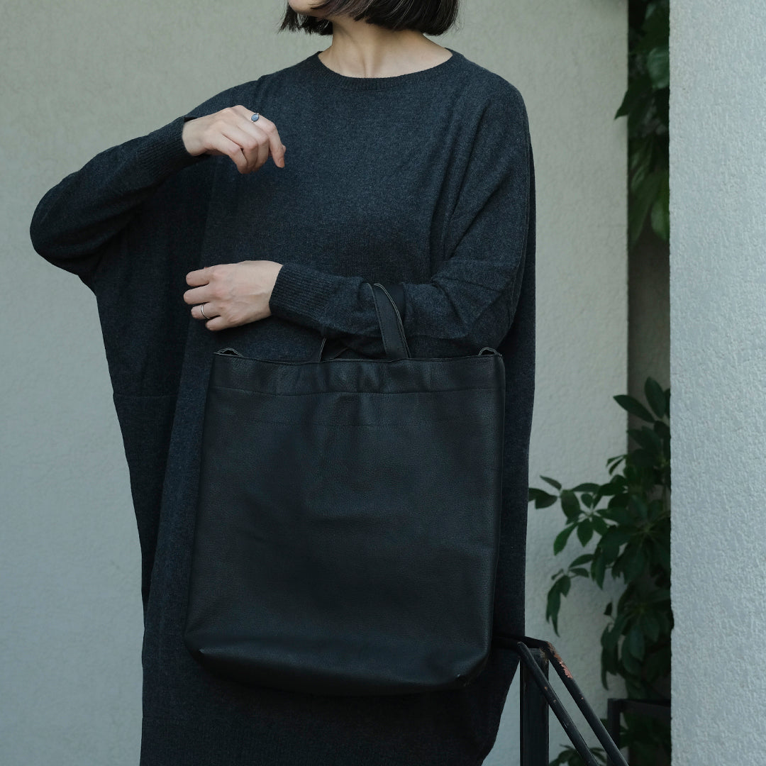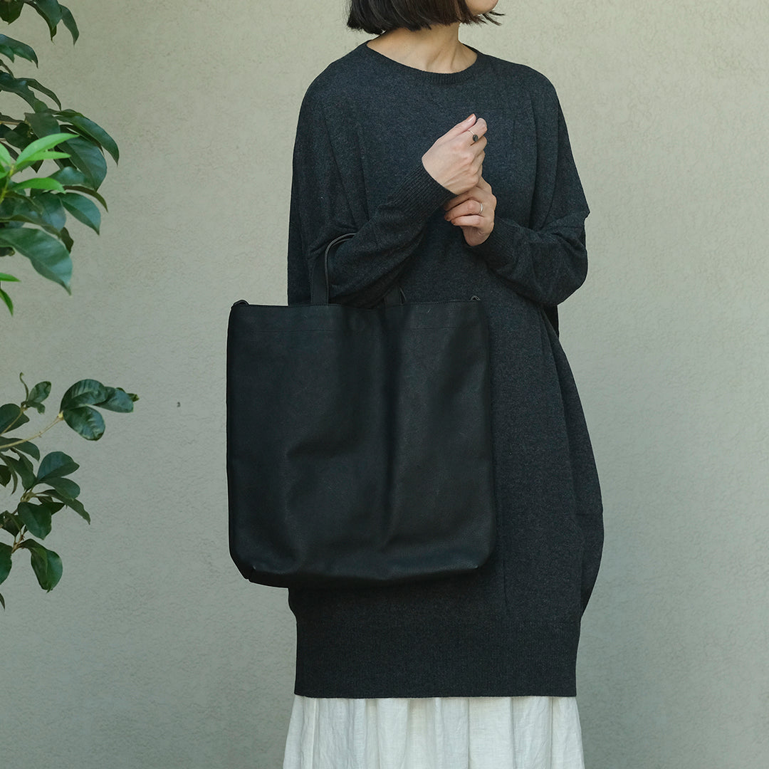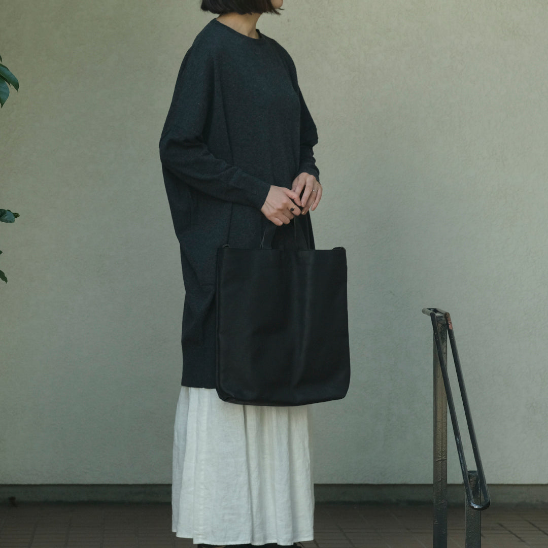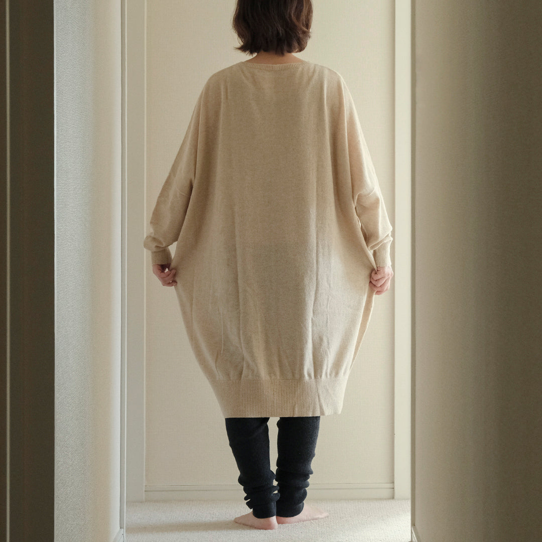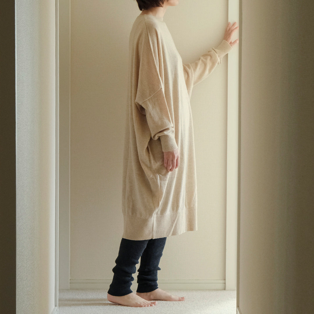 ゆったりとした着心地でシンプルな身頃と、肩を落としたドルマンなシルエットがゆったり大人な雰囲気の一枚。