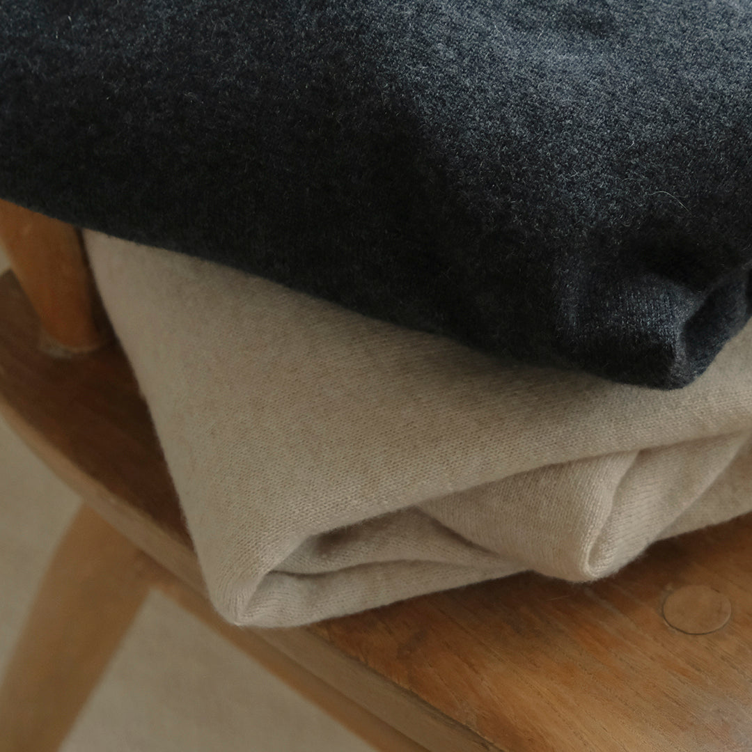 ミックスブラックは原毛の段階で染めています。そうすることで、カシミヤへの負担が最小限に抑えられるそう。