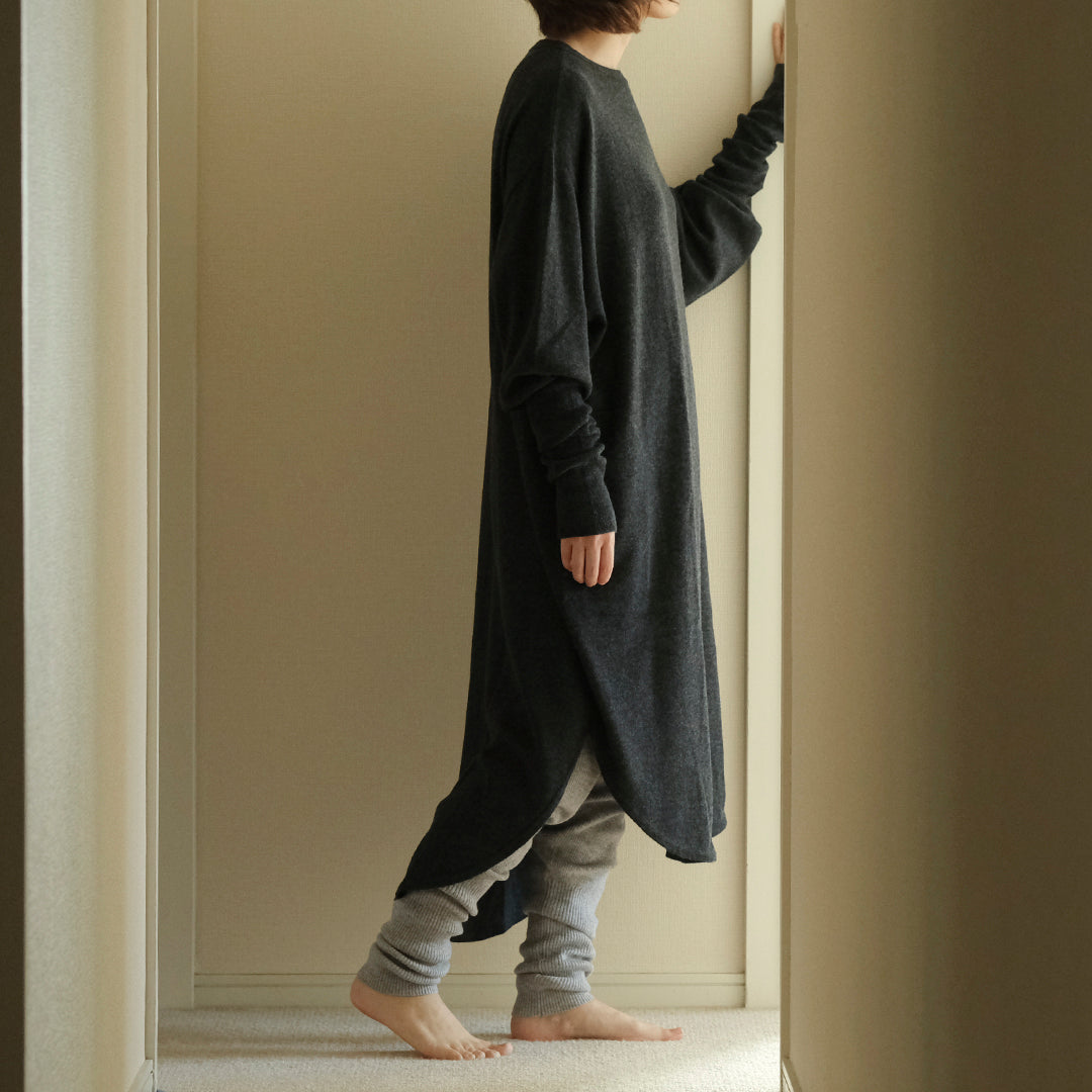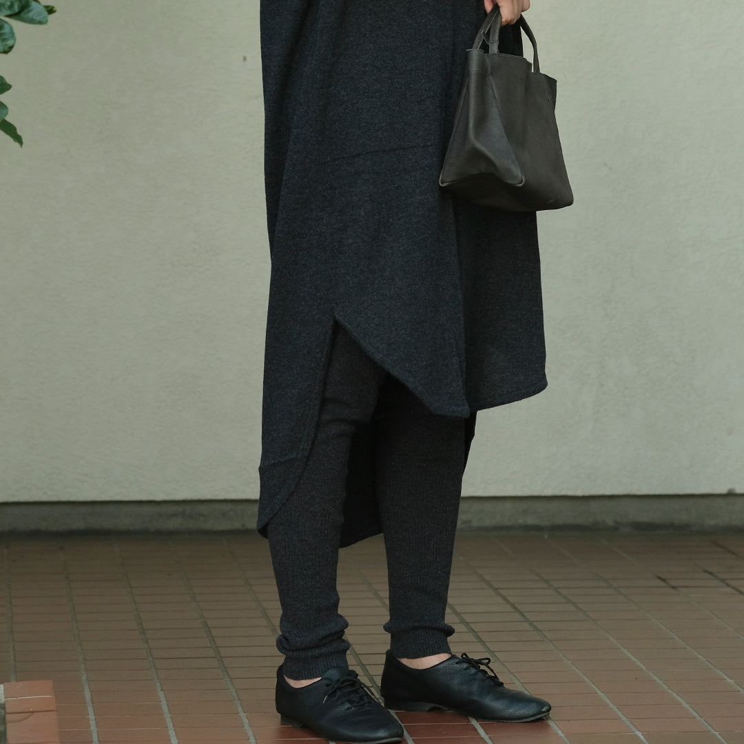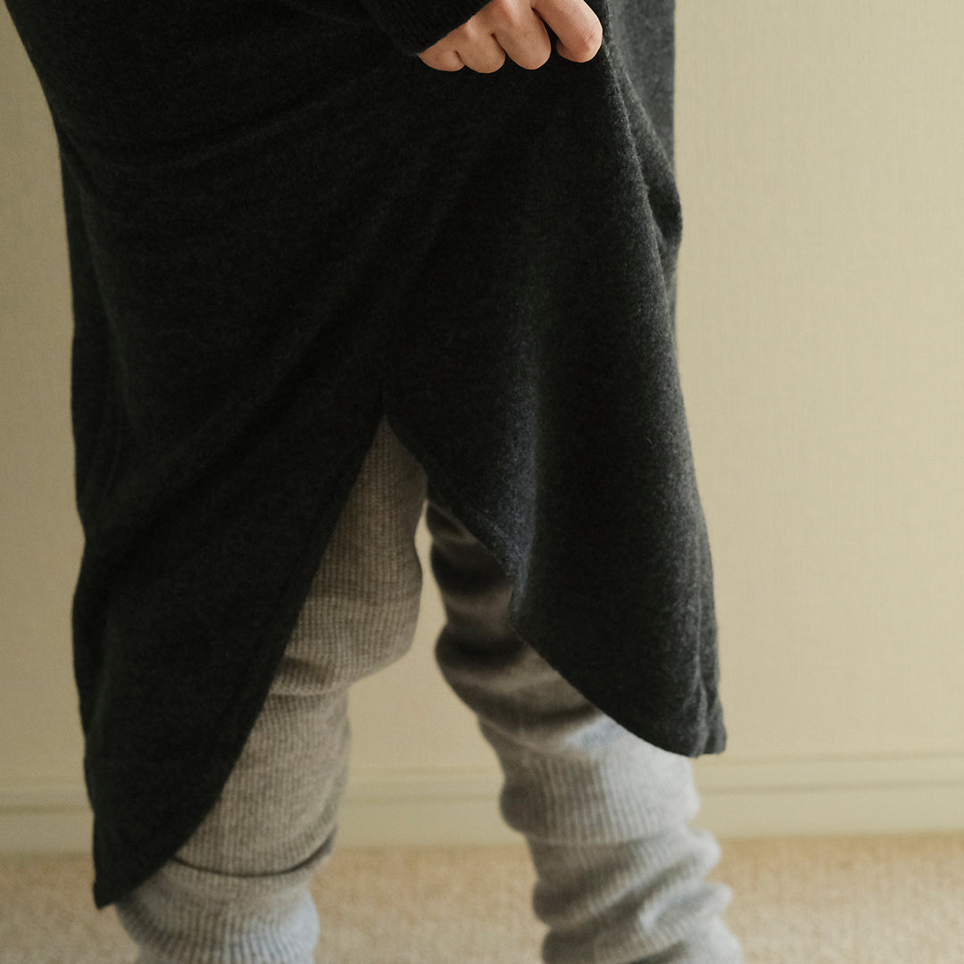 ▲チャコール モデル身長:168cm、カシミヤ ゆるレギンス