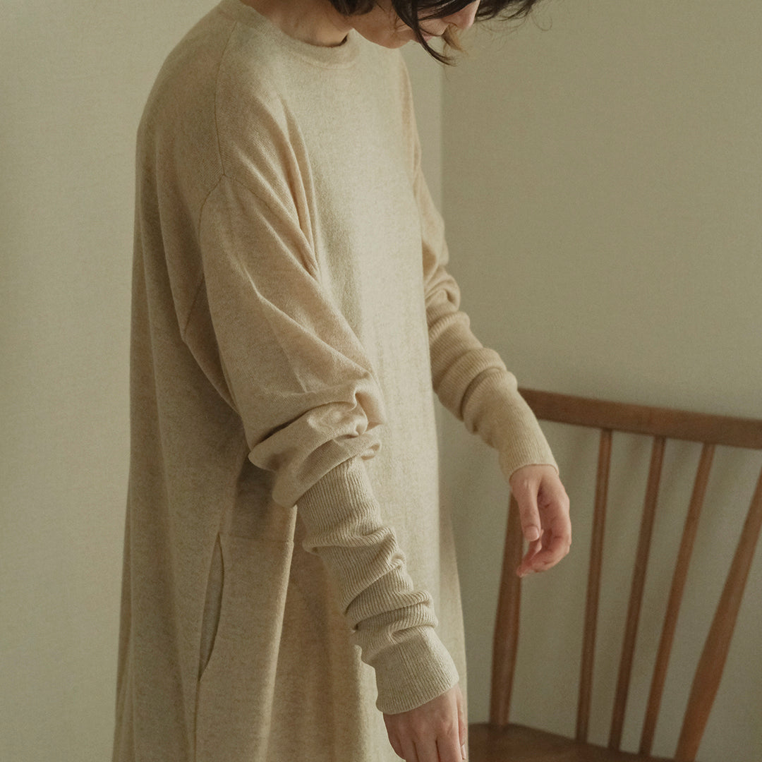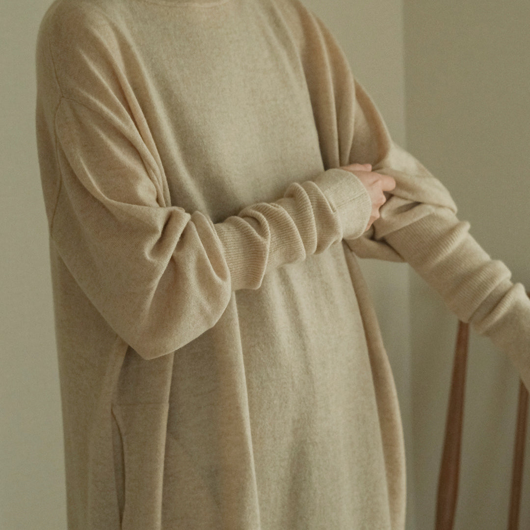 肌にも環境にもやさしい「FREEMAN--B(フリーマン)」のカシミヤニット。長いリブ袖が特徴的なリラックスワンピースがサイズ感新たにリニューアルしました。