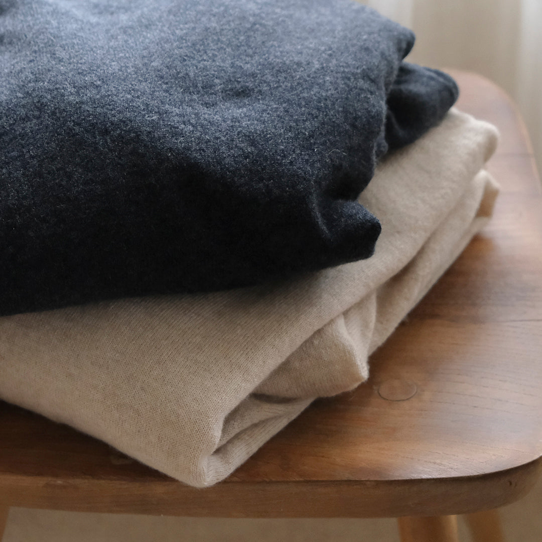 今季のカラーはチャコールとベージュの2色。ベージュは染めを施していない、カシミヤそのものの色。