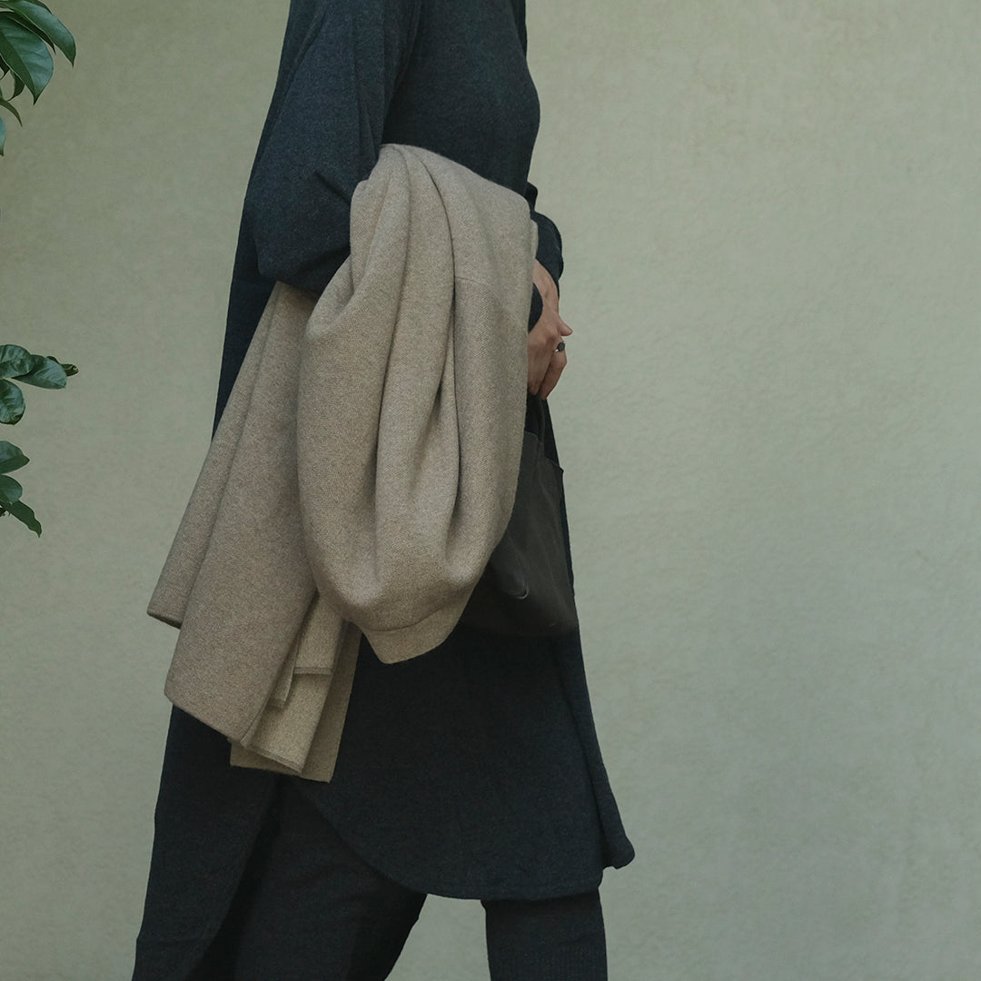 カシミヤのコートやカーディガンに合わせて、よりリラクシーな着こなしもおすすめです。