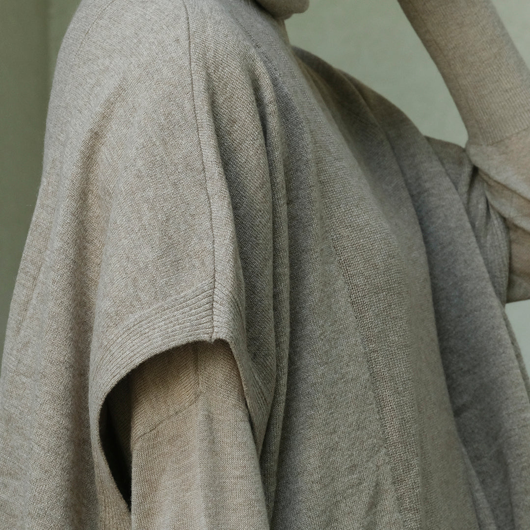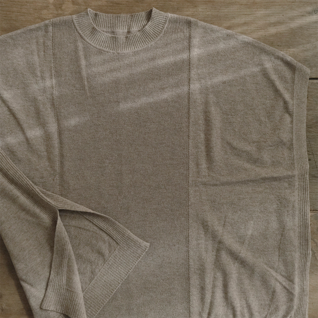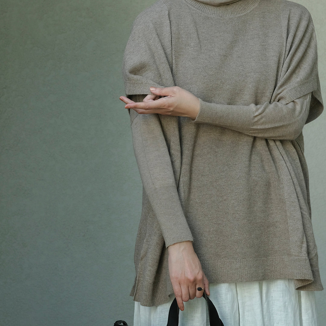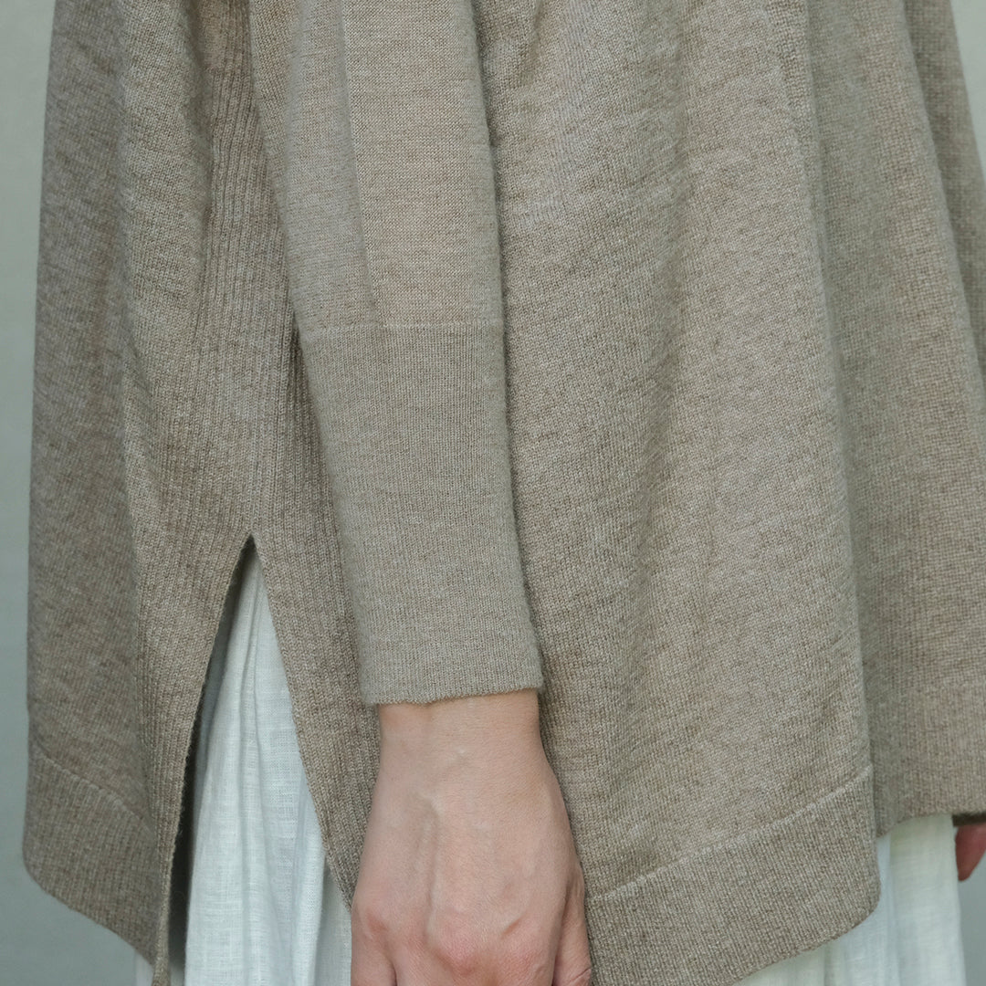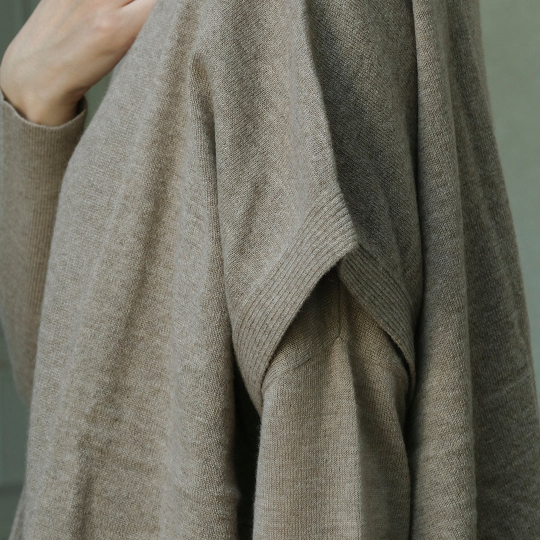 身体の線を拾わないゆったりとした身幅で、体型を選ばず着こなすことができます。肩線のないざっくりとしたデザインに、流れるような生地の落ち感が女性らしさを演出。