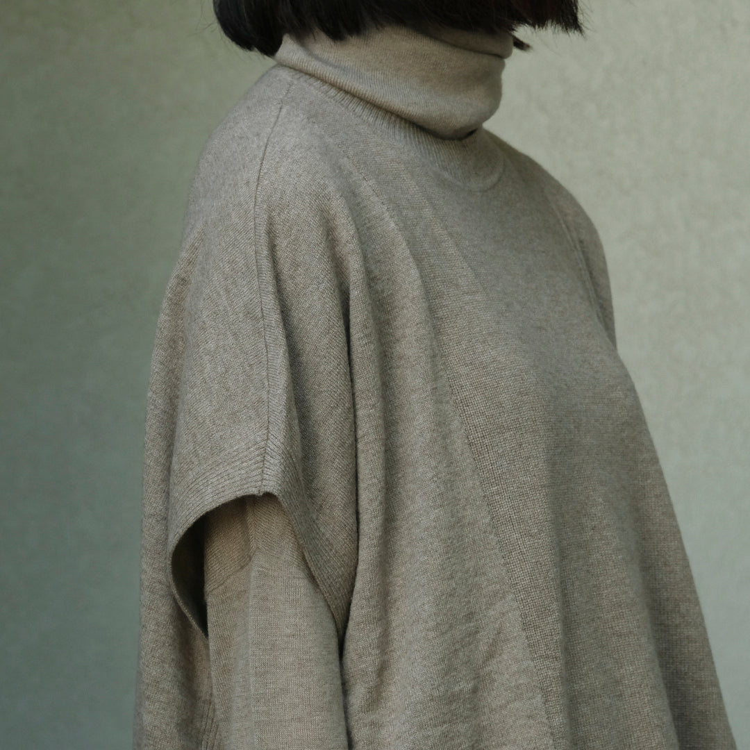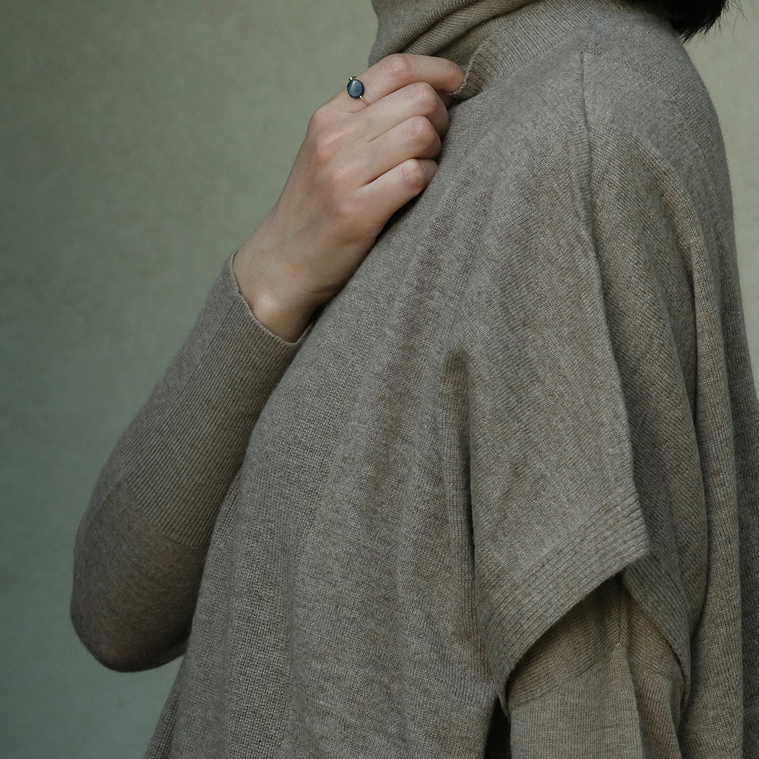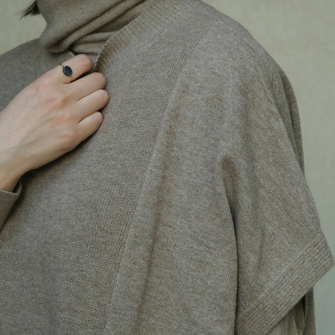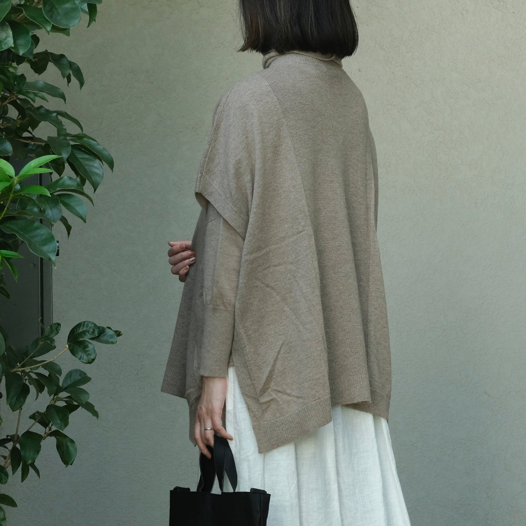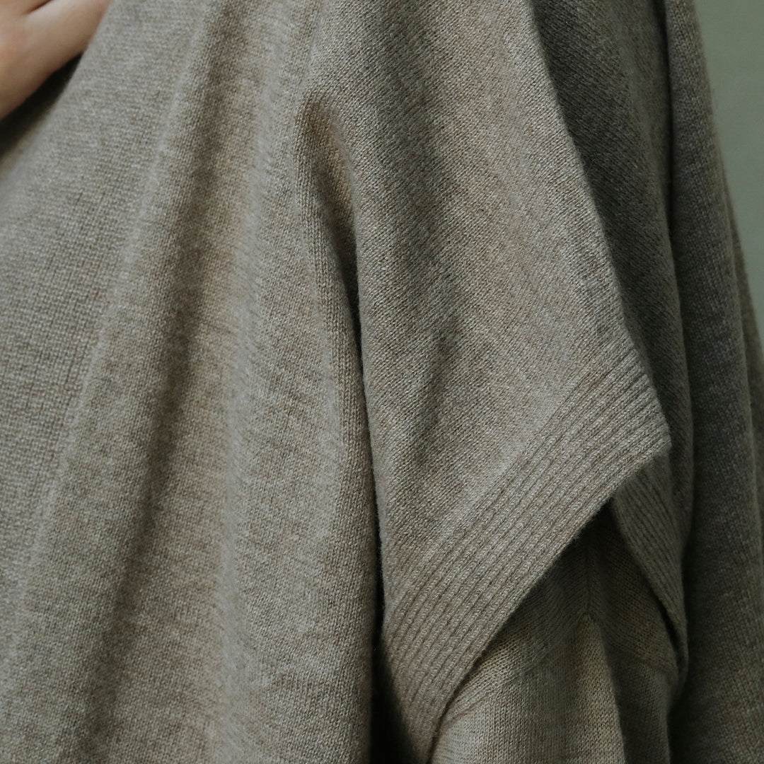ゆったり落ちるニットがドレープのように感じられ、後ろ姿も優雅な雰囲気。