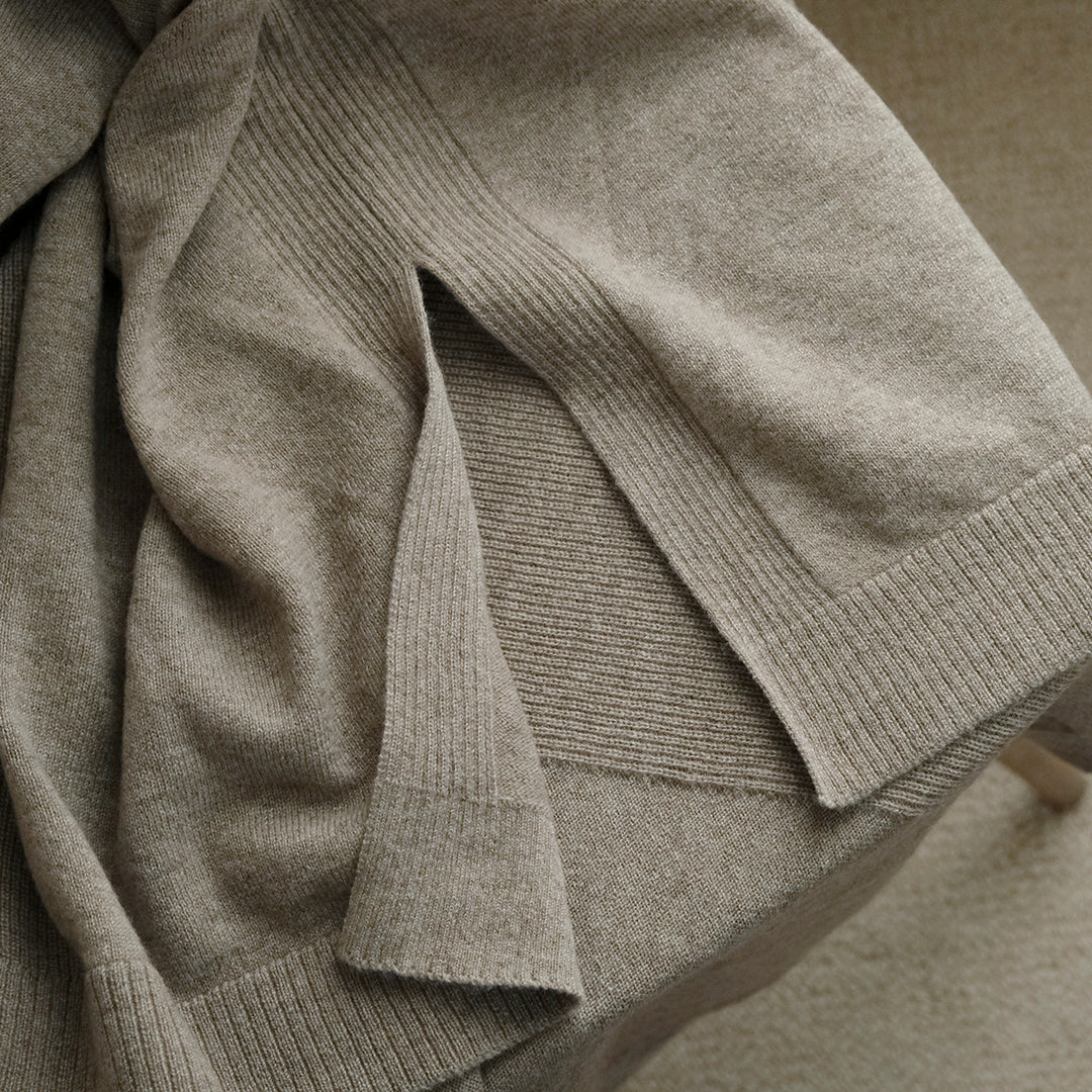 肩までやさしく包んでくれるので、寒い日もあたたかく寄り添います。▲スリット部分