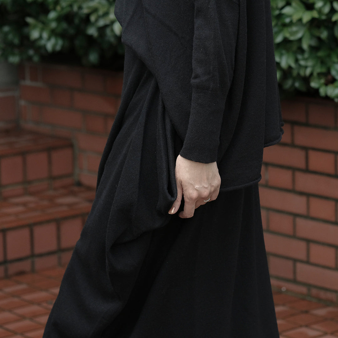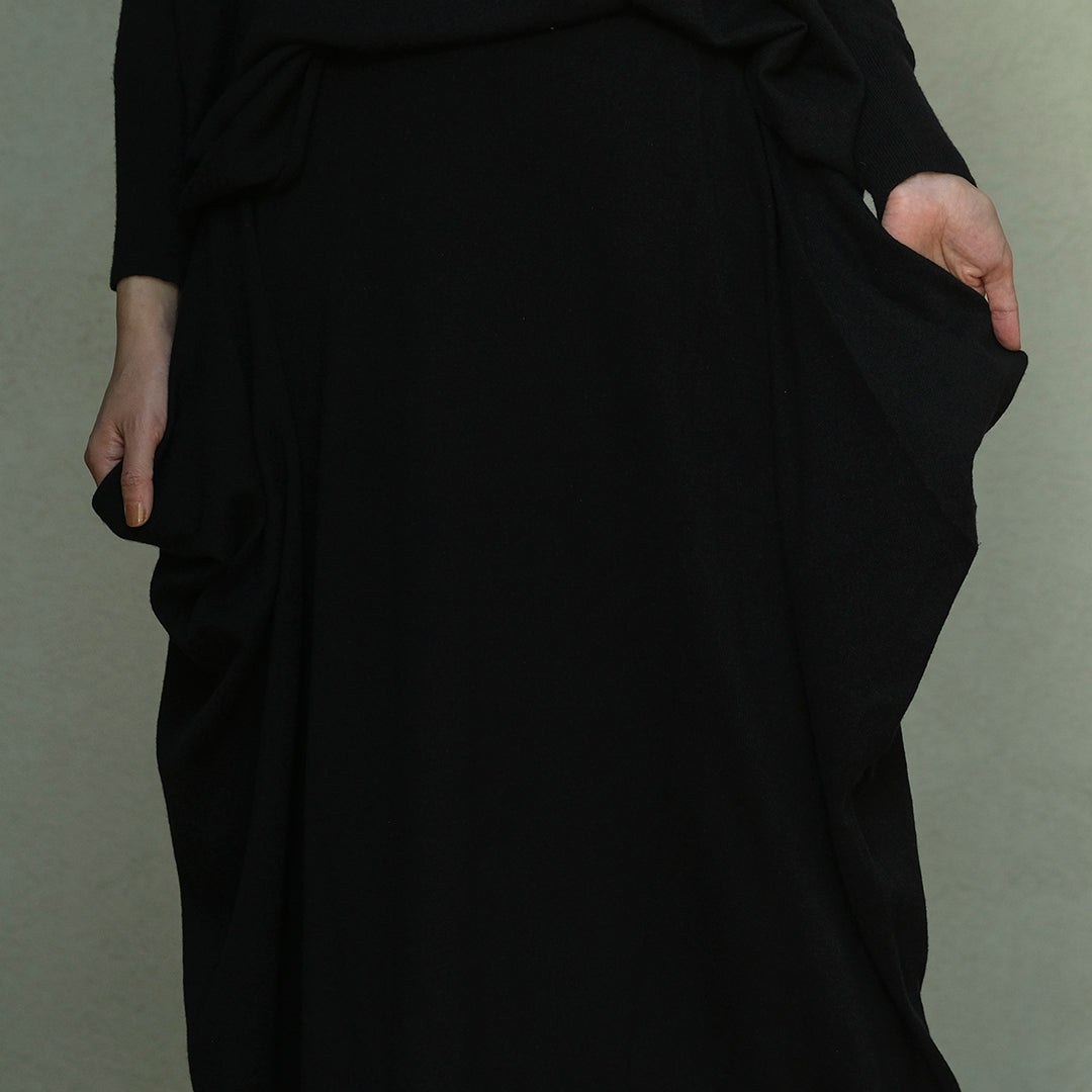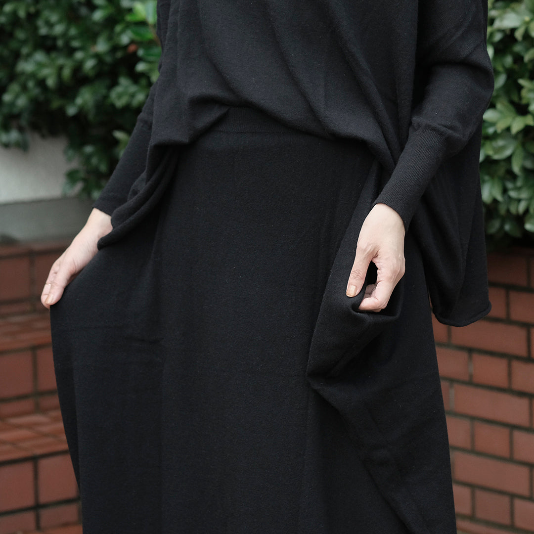 肌にも環境にもやさしい「FREEMAN--B(フリーマン)」のカシミヤ。大きくデザインされたポケットに、洗練されたシルエットが楽しめる楽ちんニットスカートをご紹介します。