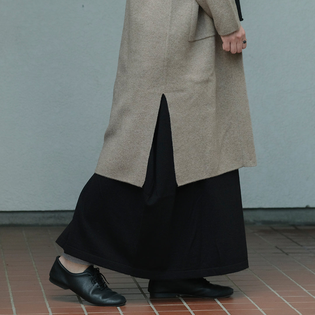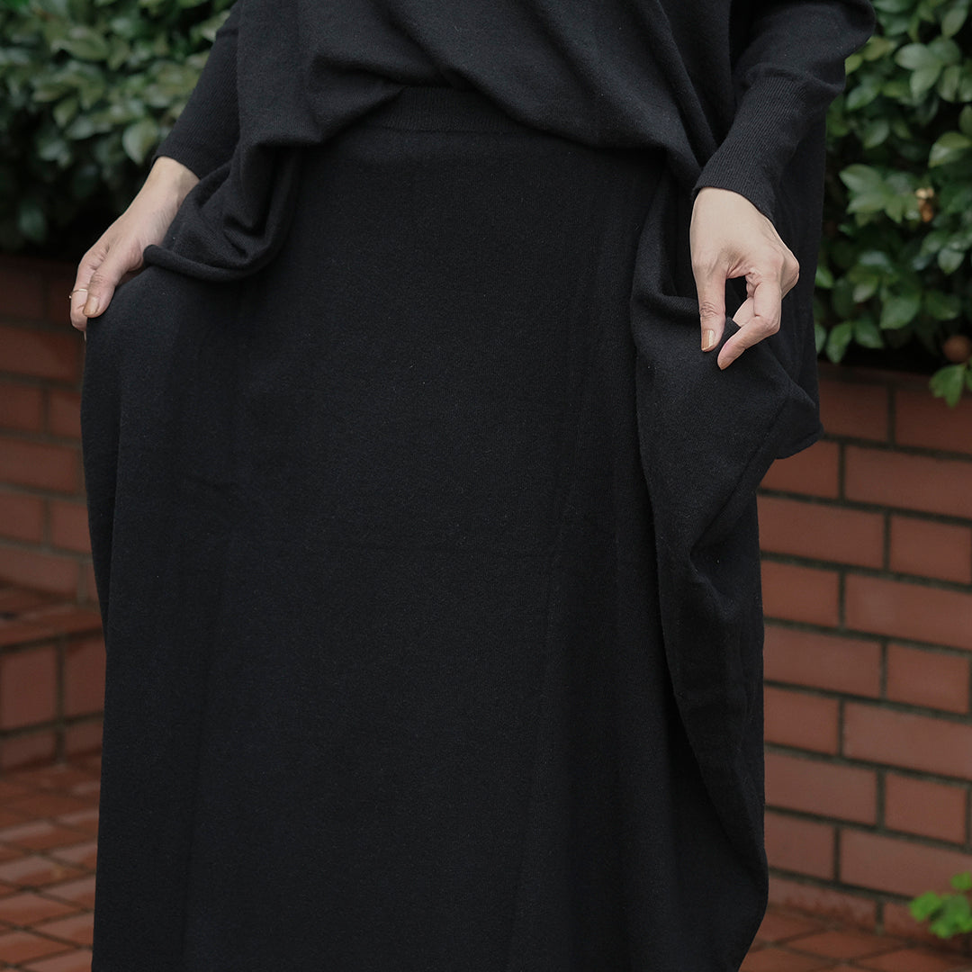 高品質のカシミヤで仕立てたFREEMAN--Bのニットスカート。ほっこりとした印象になりがちなニットを上品でモダンな印象に仕立てています。