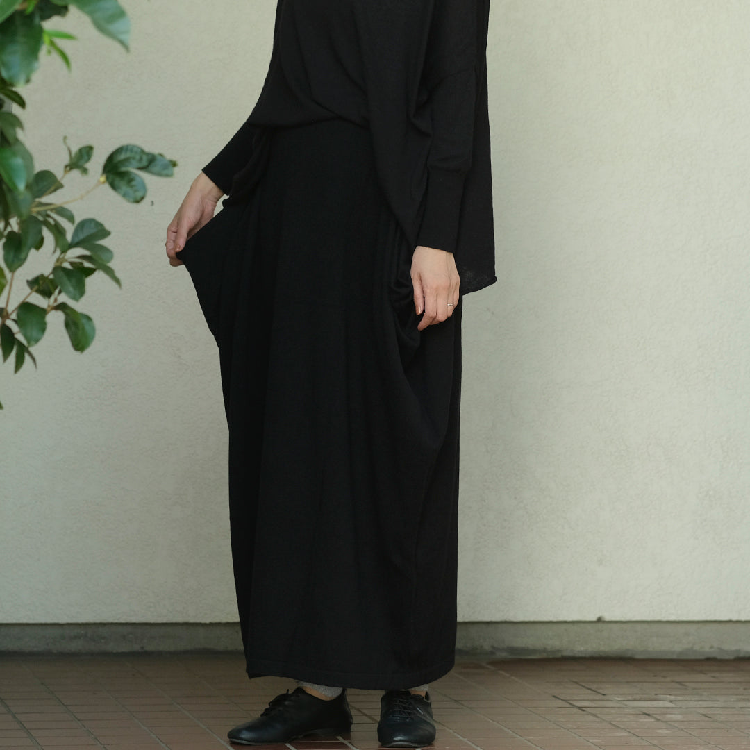 やわらかくフィットして、ふわっと軽い着心地。楽ちんなのにすっきりとした着こなしが叶うニットスカート。