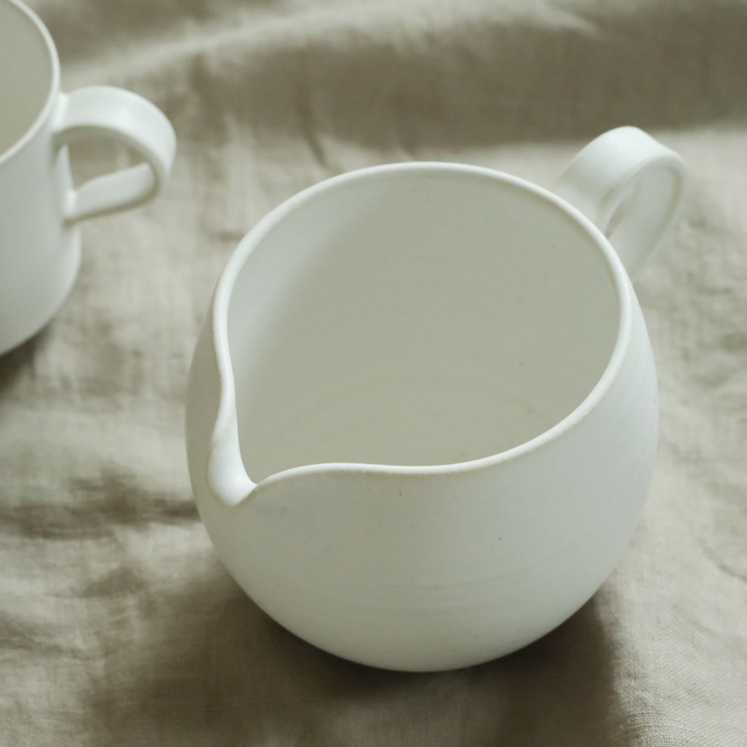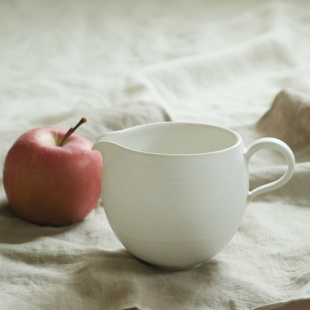 ふっくらとした丸みが愛らしいフォルムのピッチャー。ボディからなめらかに繋がる注ぎ口が、シンプルながらユニーク。水やお茶だけでなく、紅茶やコーヒーのサーバーとしてもお使いいただけます。