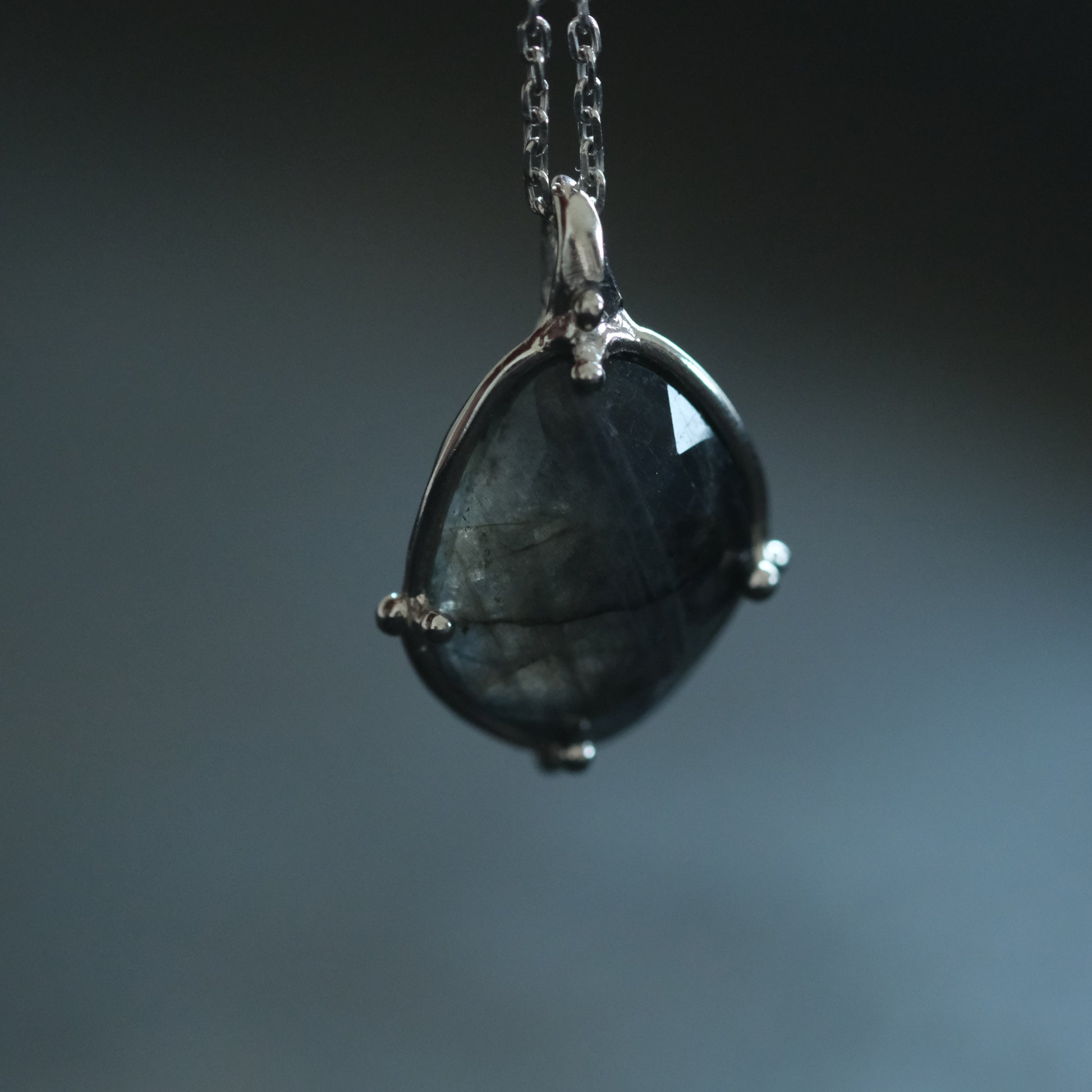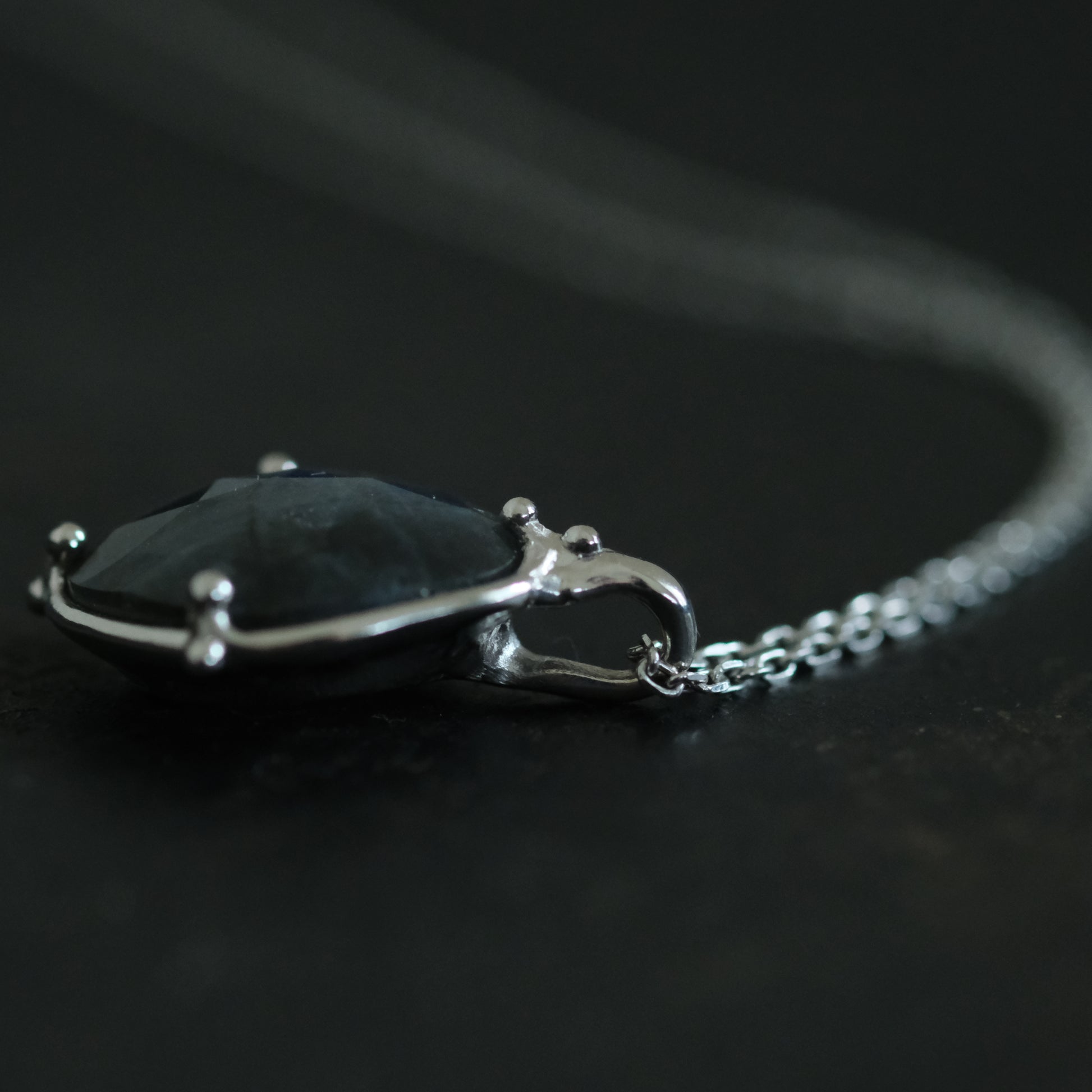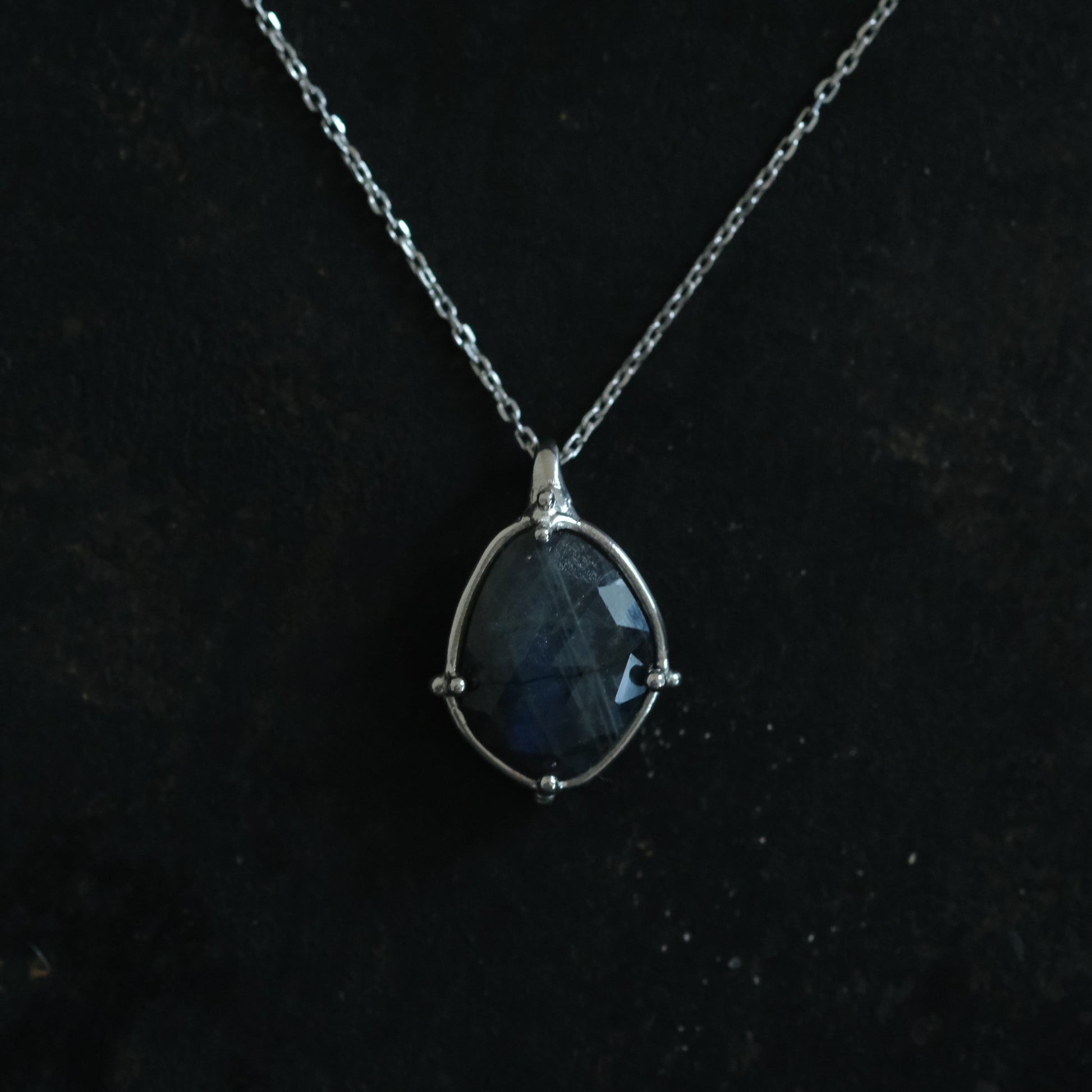 吸い込まれそうな深いブルーのブラックオパールネックレス。オパールならではの遊色効果が楽しめて、ずっと眺めていても飽きさせない魅力があります。