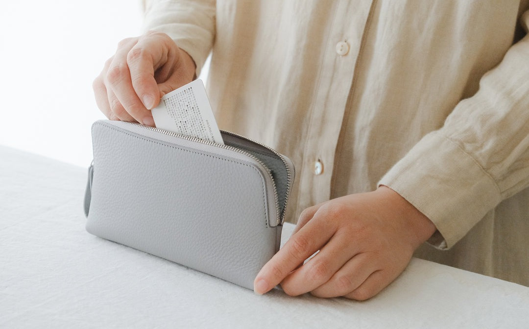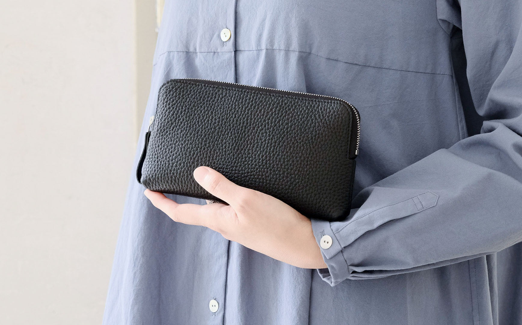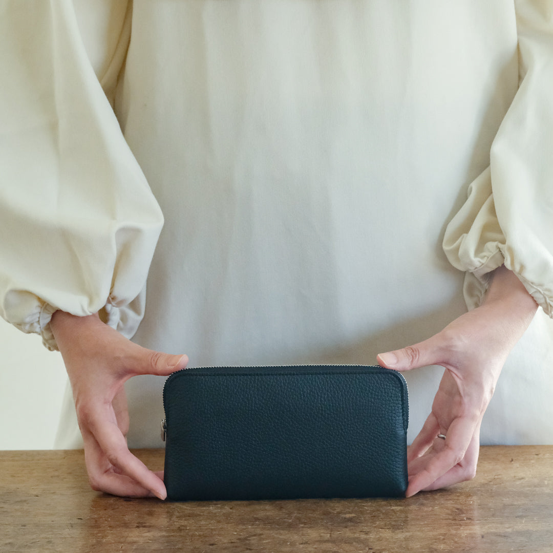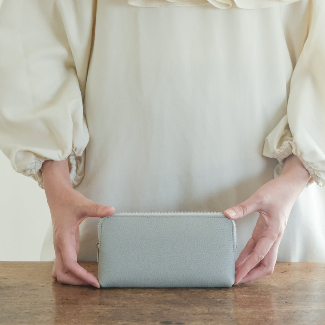 名古屋に工房を持ち、ひとつひとつ手作業で革小物をつくるSTUDIO LA CAUSE(スタジオラコーズ)。ファスナーつきのシリーズから、シュリンクレザーの財布(L)をご紹介します。