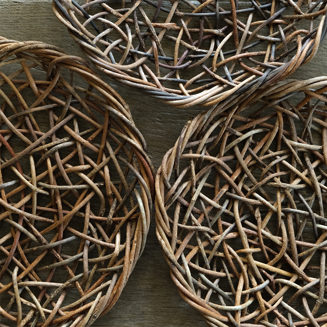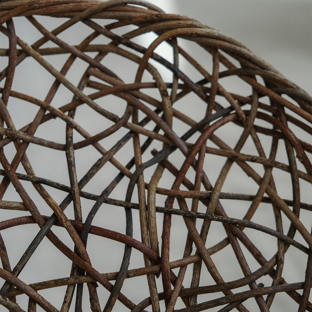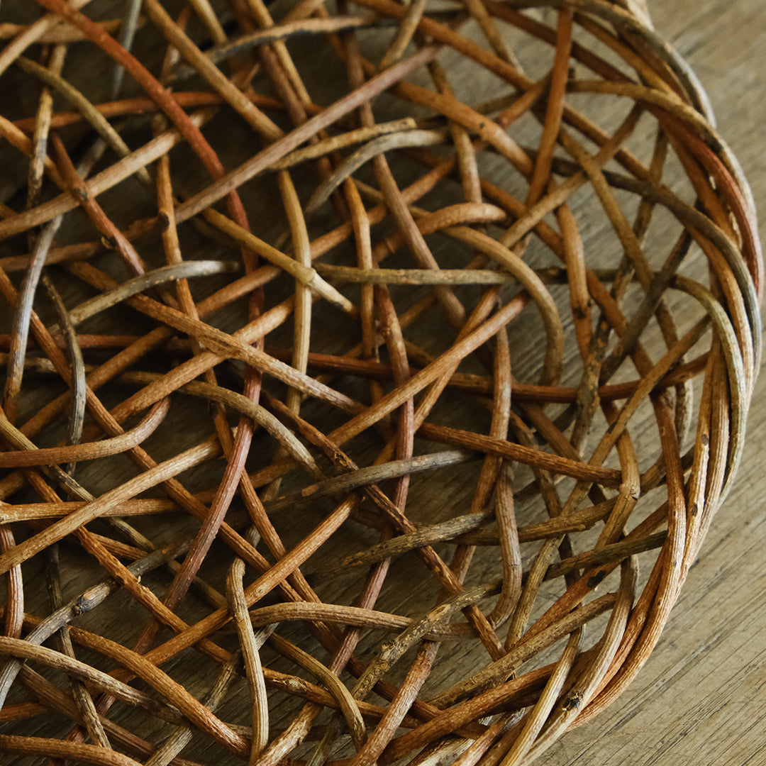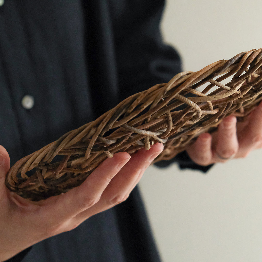 色んな方向から編まれた乱れ編みは、見た目以上に丈夫なんだそう。熟練の職人がしなやかさ、太さ、色つやのよい蔓を選んでひとつひとつ編み上げました。