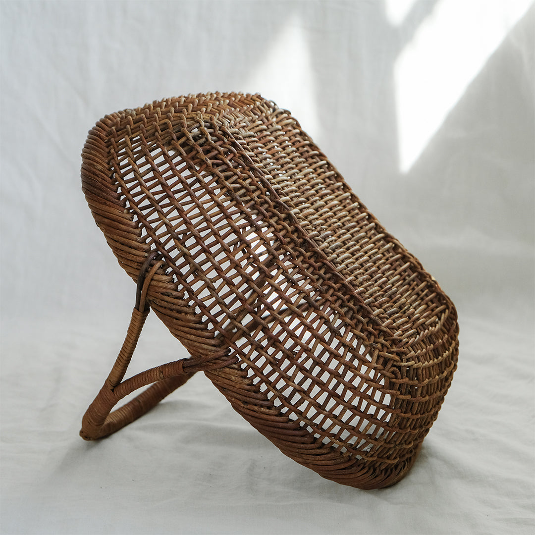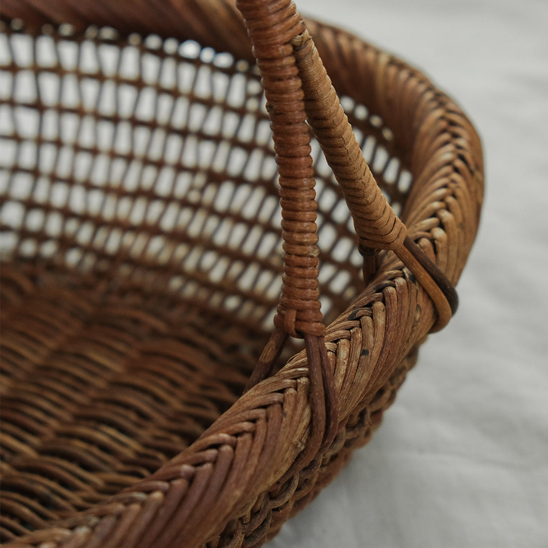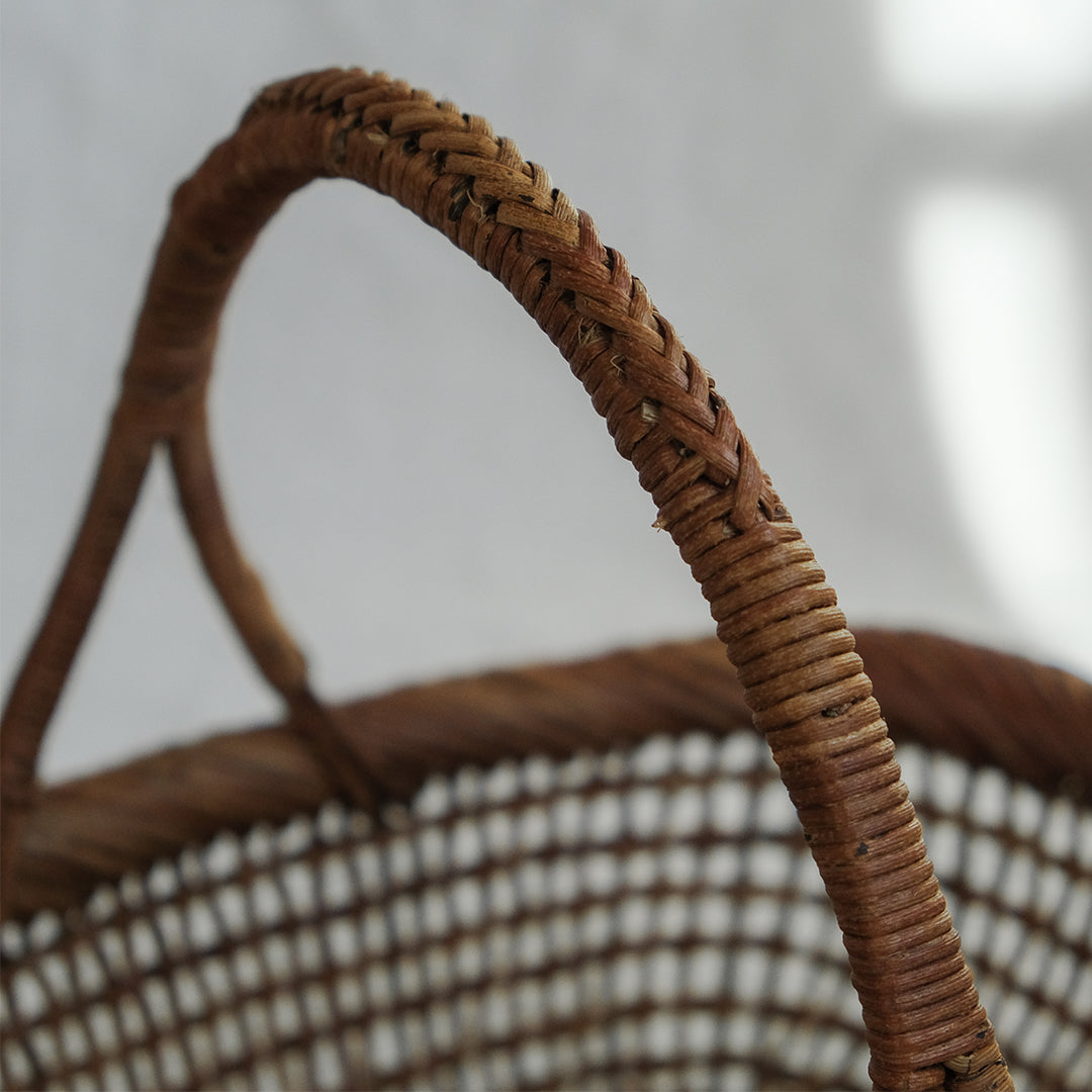 しっかりとした太さのあけびで編まれているので、繊細な印象とは違い安心感のある手触りです。 丁寧に隙間なく巻かれた持ち手は、ずっと触っていたくなる心地よさ。