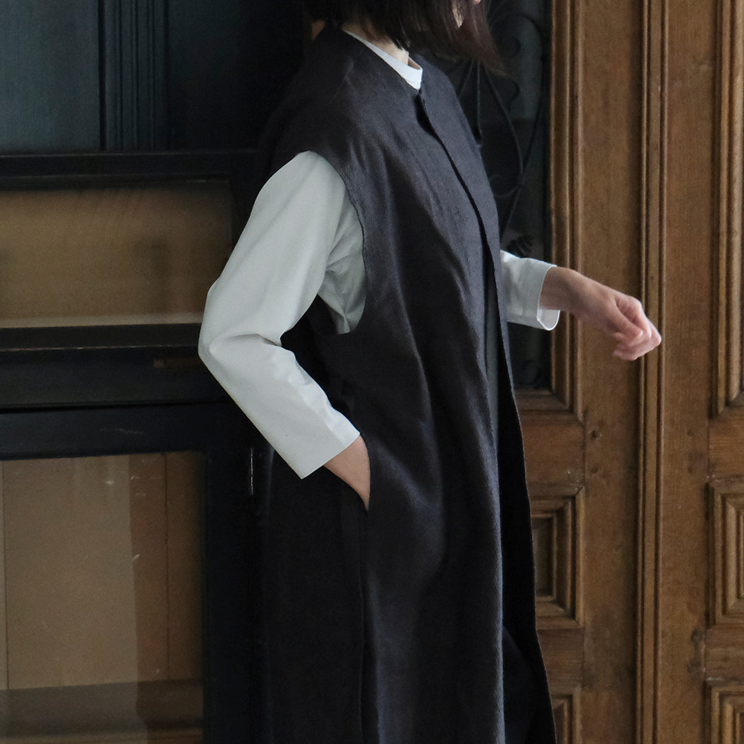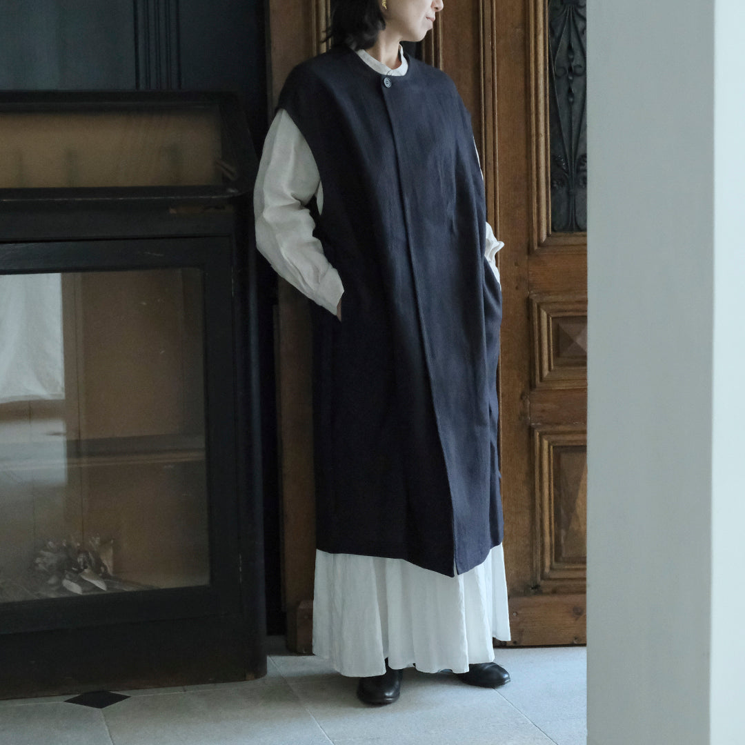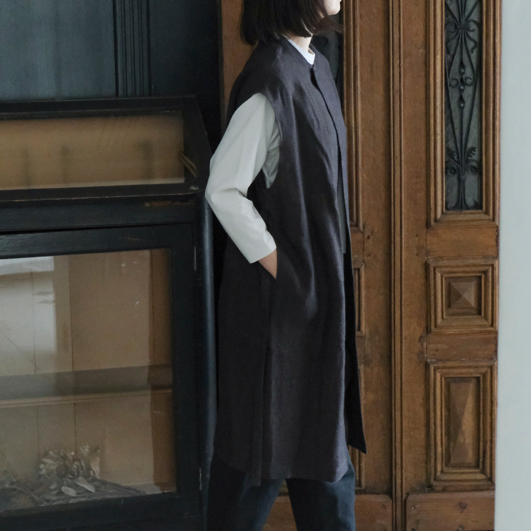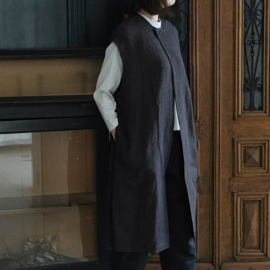 Envelope Select|[SALUÉ]ラウンドネックロングジレ/ウールリネンジャカードformal