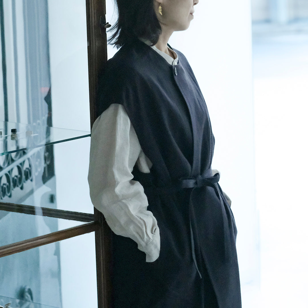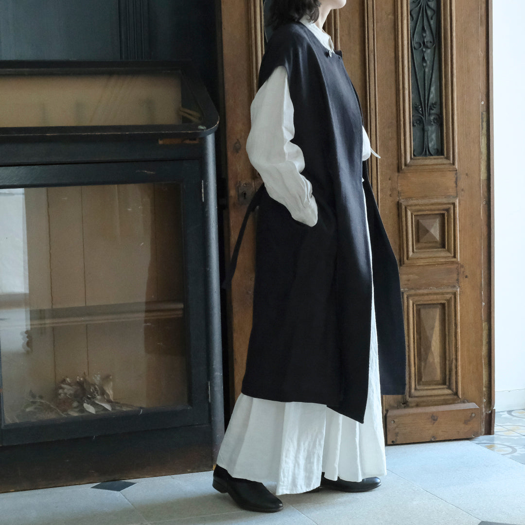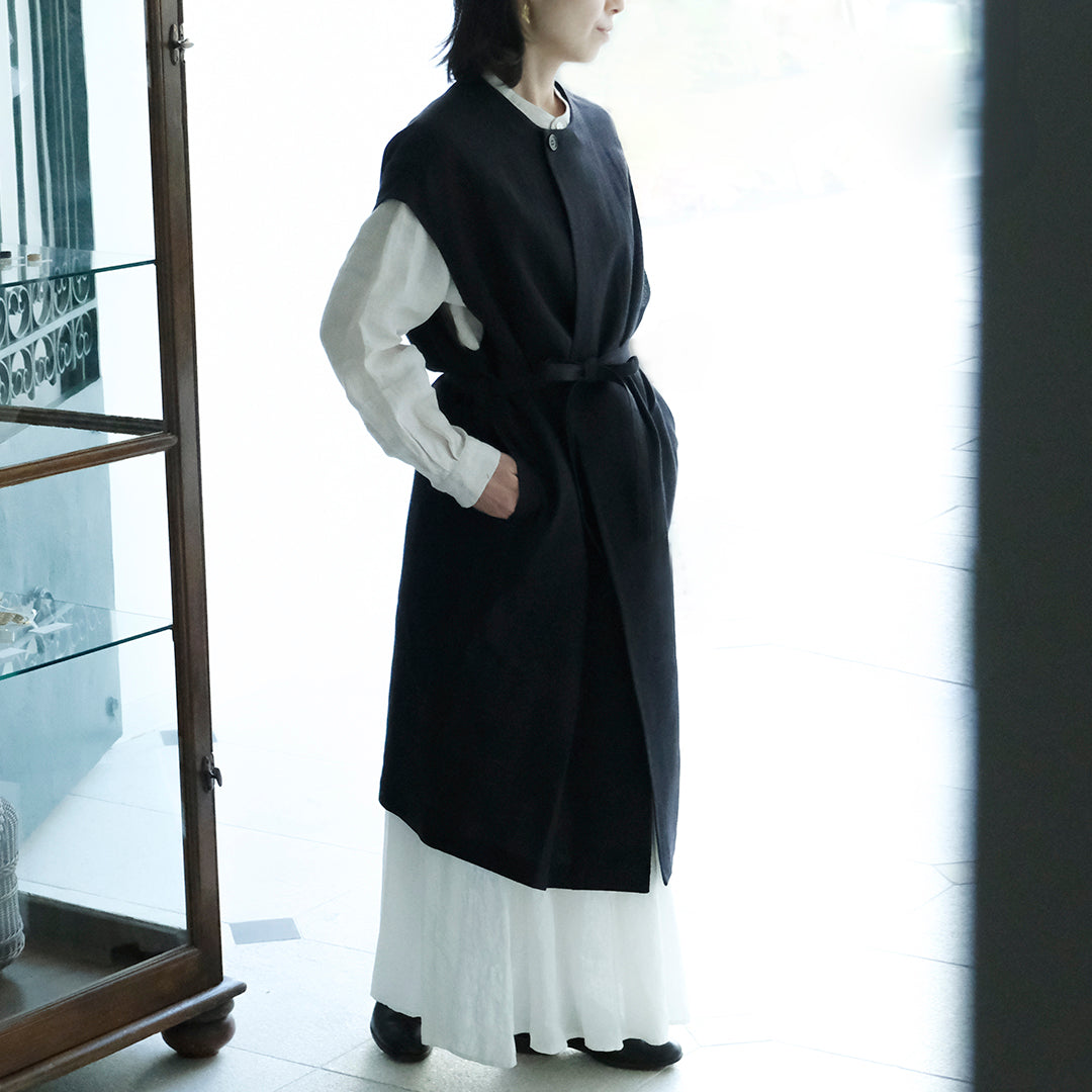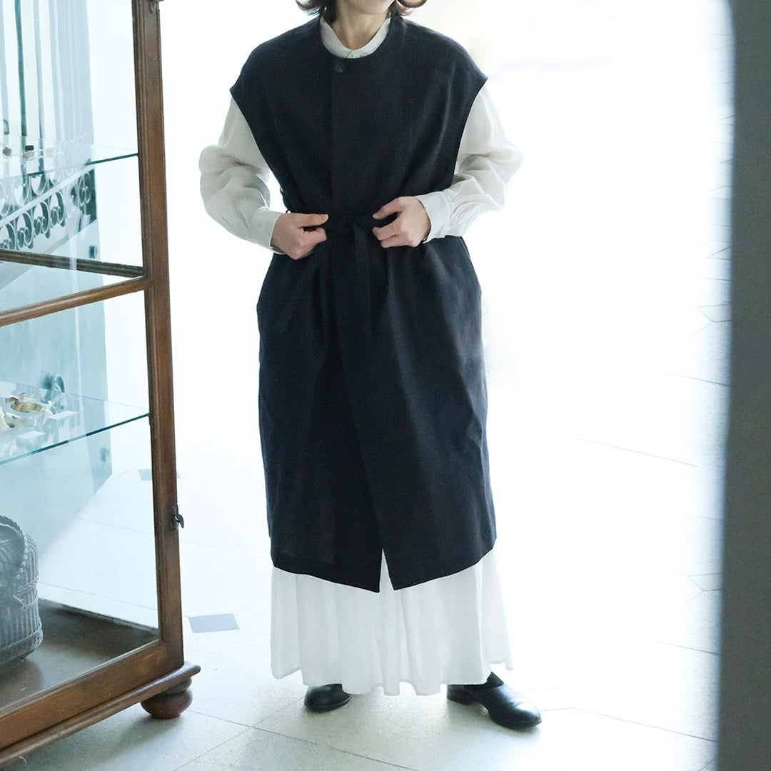 Envelope Select|[SALUÉ]ラウンドネックロングジレ/ウールリネンジャカードformal