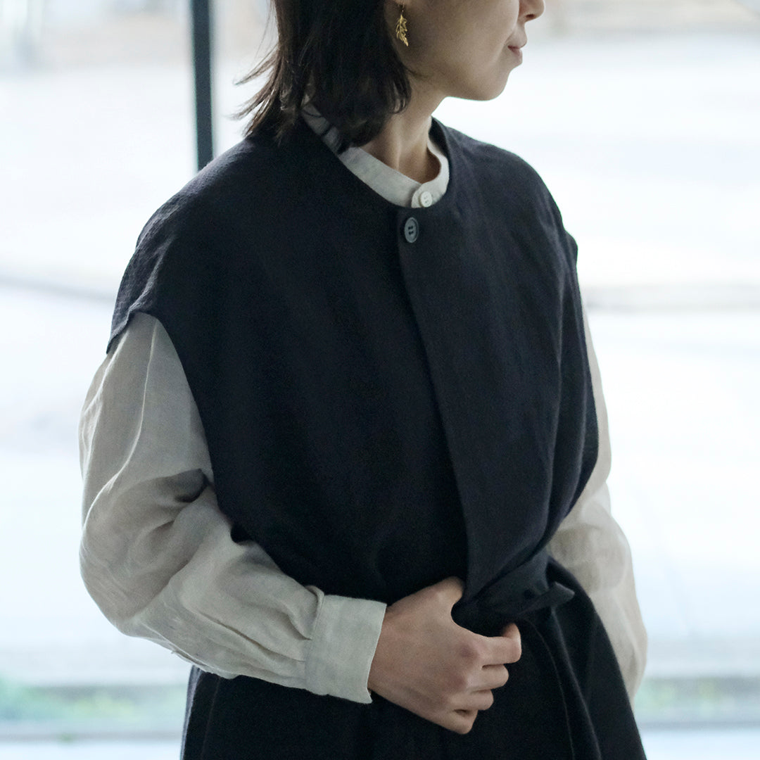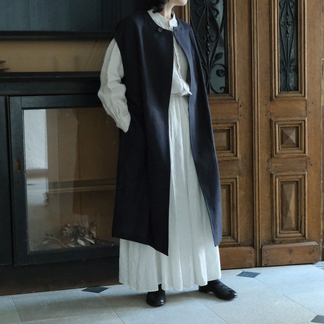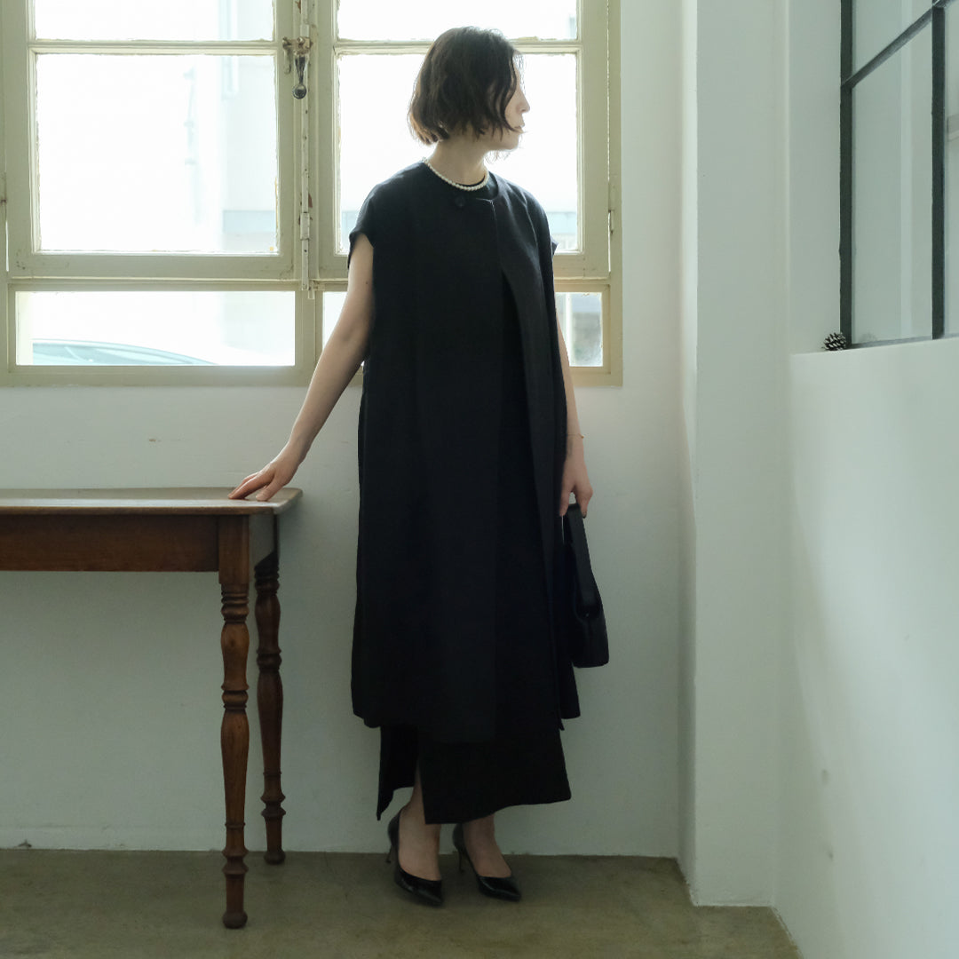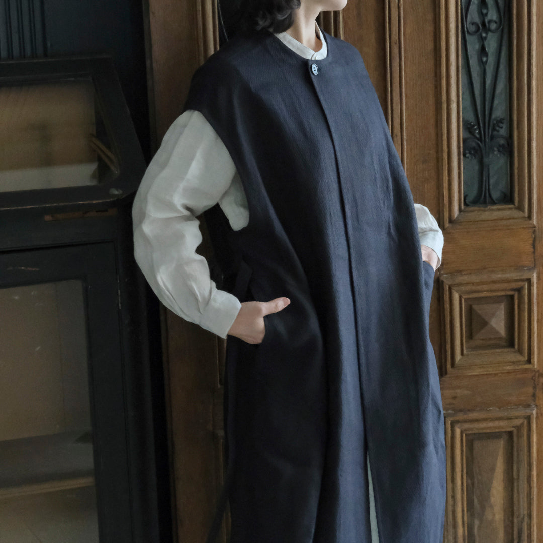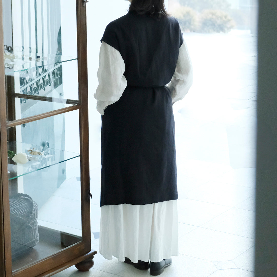 Envelope Select|[SALUÉ]ラウンドネックロングジレ/ウールリネンジャカードformal