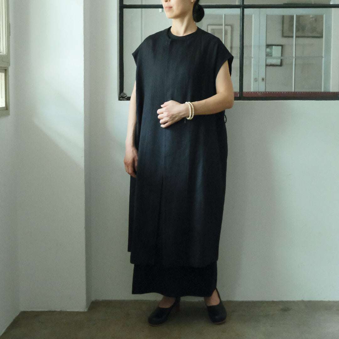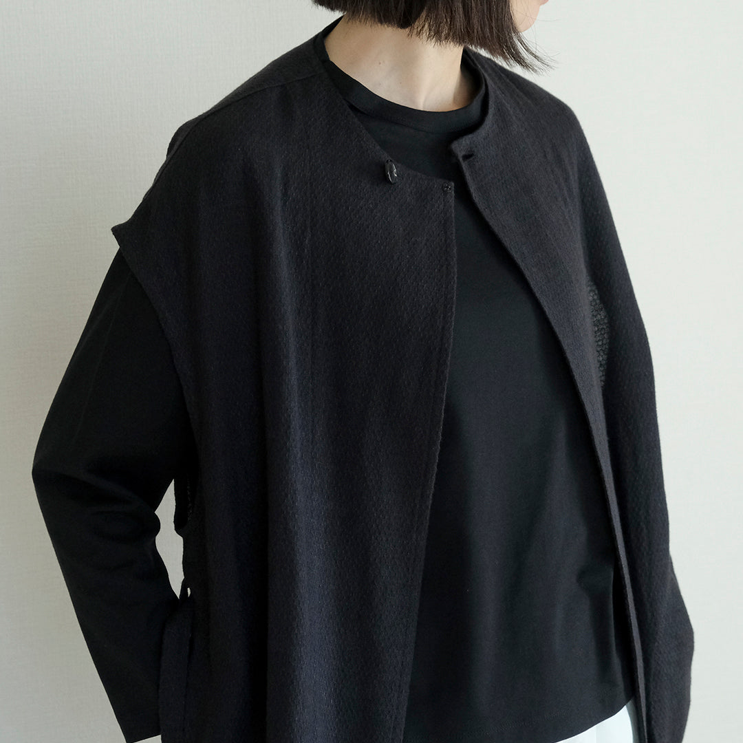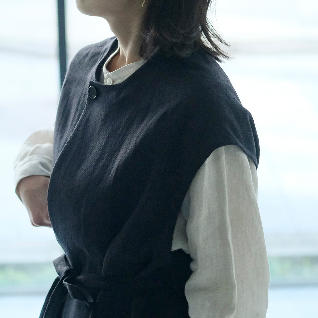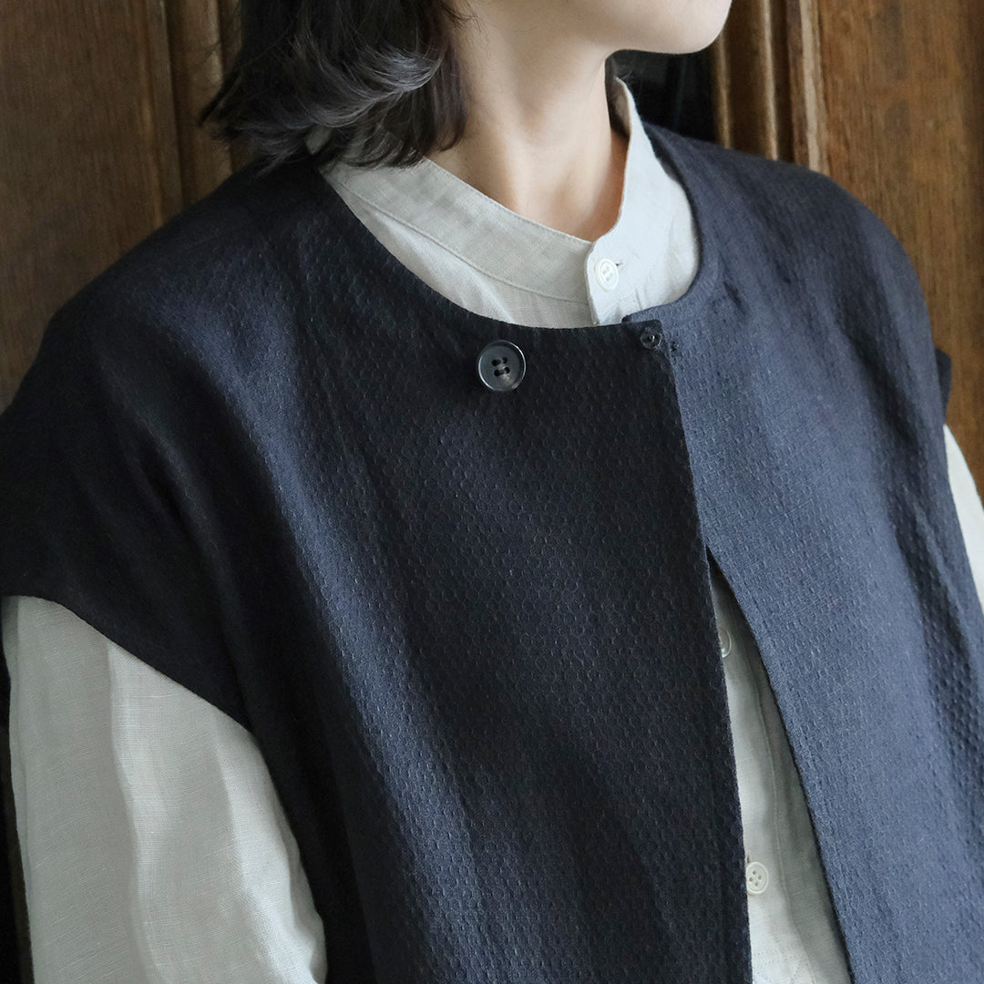 Envelope Select|[SALUÉ]ラウンドネックロングジレ/ウールリネンジャカードformal