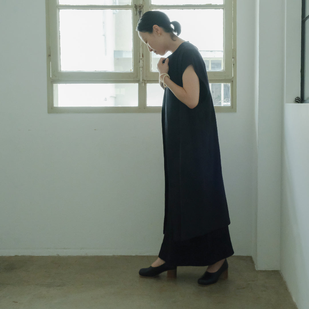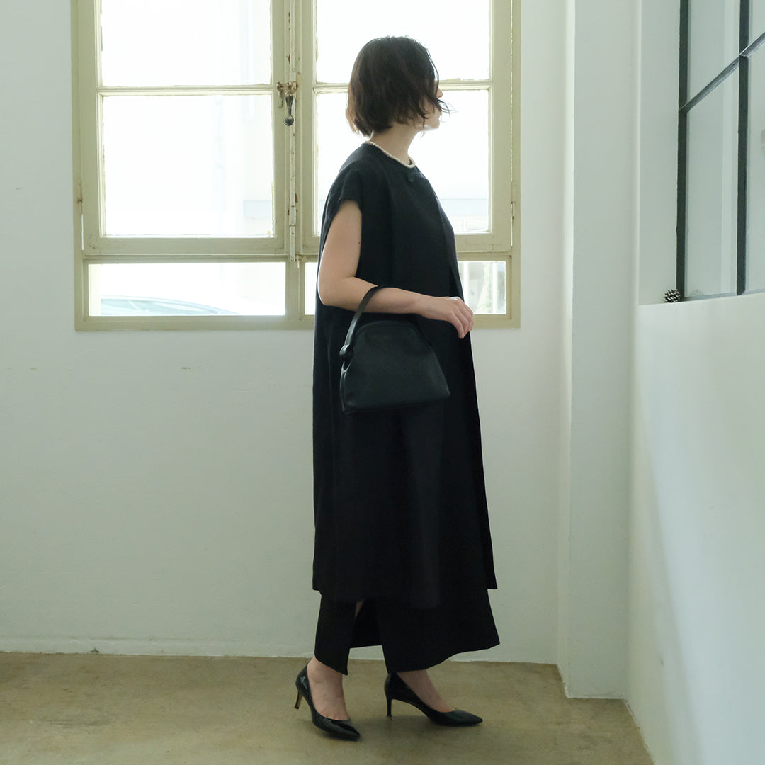 ノースリーブのワンピースにさっと羽織ったり、ハイネックのニットや長袖のシャツ、シンプルなカットソーにもぴったり。幅広いシーンはもちろん、一年中活躍間違いなし。▲ブラック、ロングスリーブTシャツ、エッグチノパンツ自分らしいけれど、いつもと違う特別感のある着こなしが叶う大人の一着です。