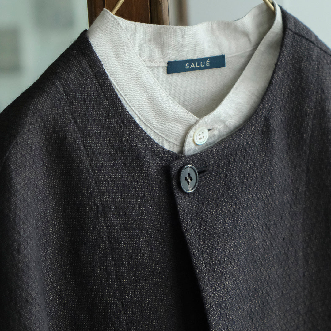 素材:リネン85%、ウール15%、水牛ボタン