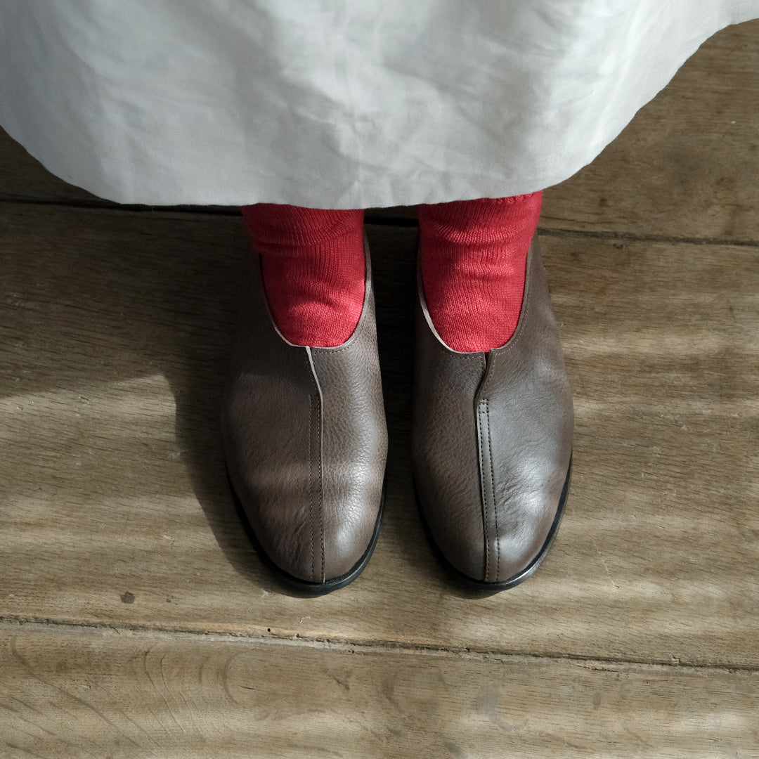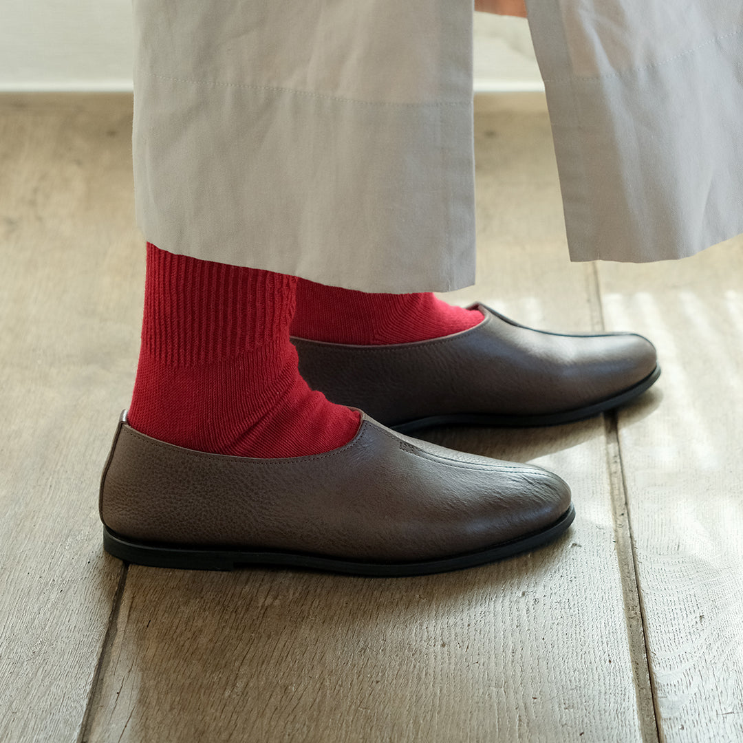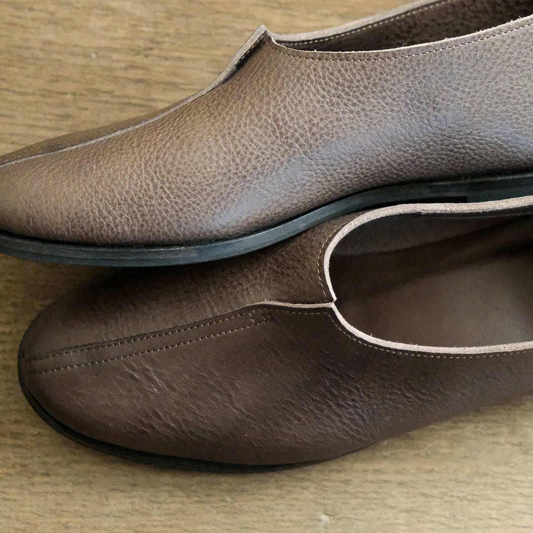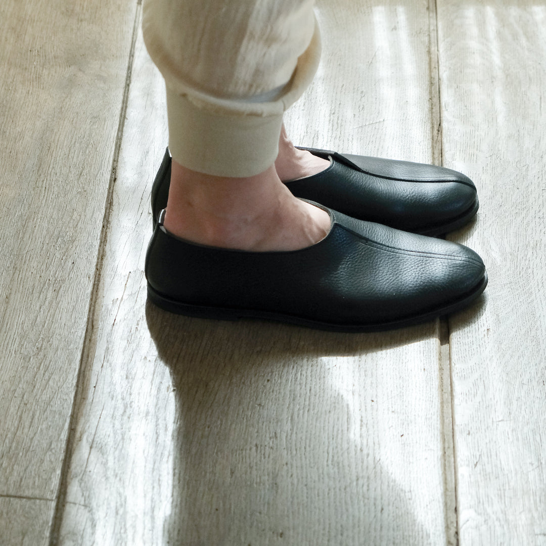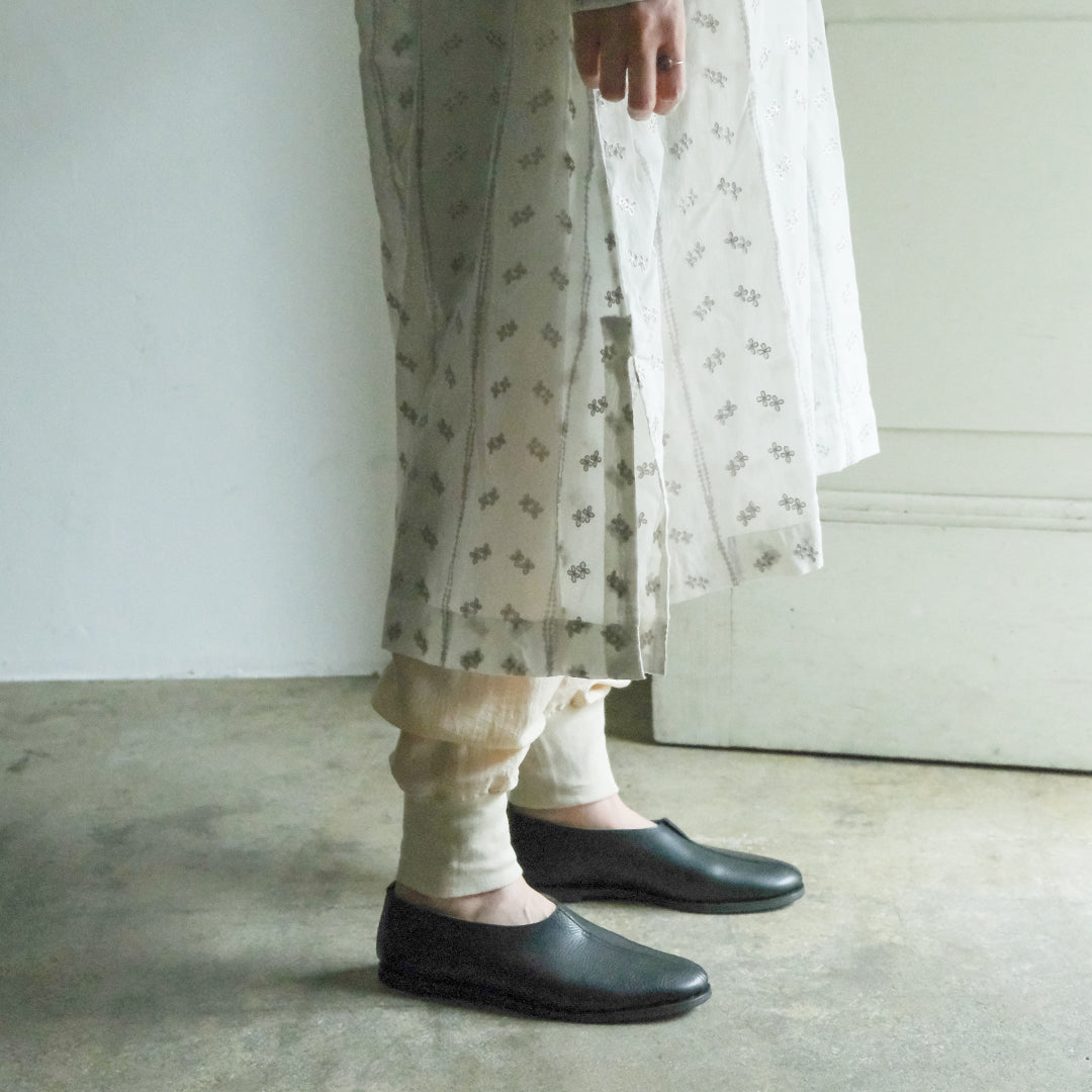 デザインはAUTTAAの定番、外でも履ける「ルームシューズ2」と通じるものがありますが、こちらは芯材を入れてよりしっかりときちんとした感じ。お出かけ向きに仕上げられています。