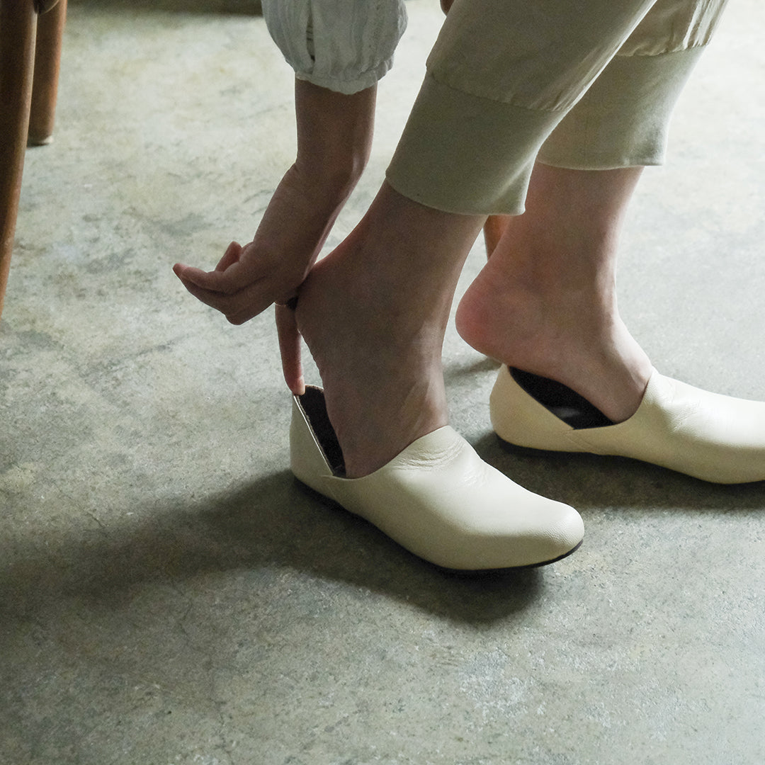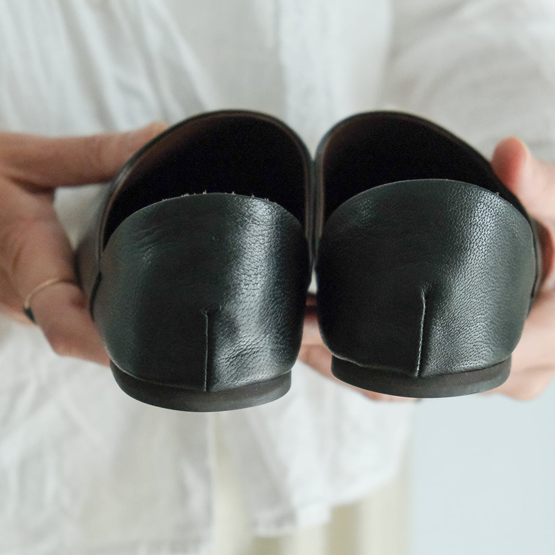 ソフトなゴートレザー、外でも履けるルームシューズ