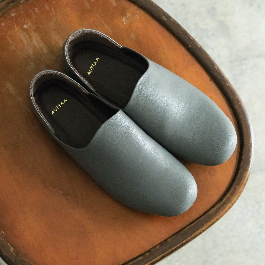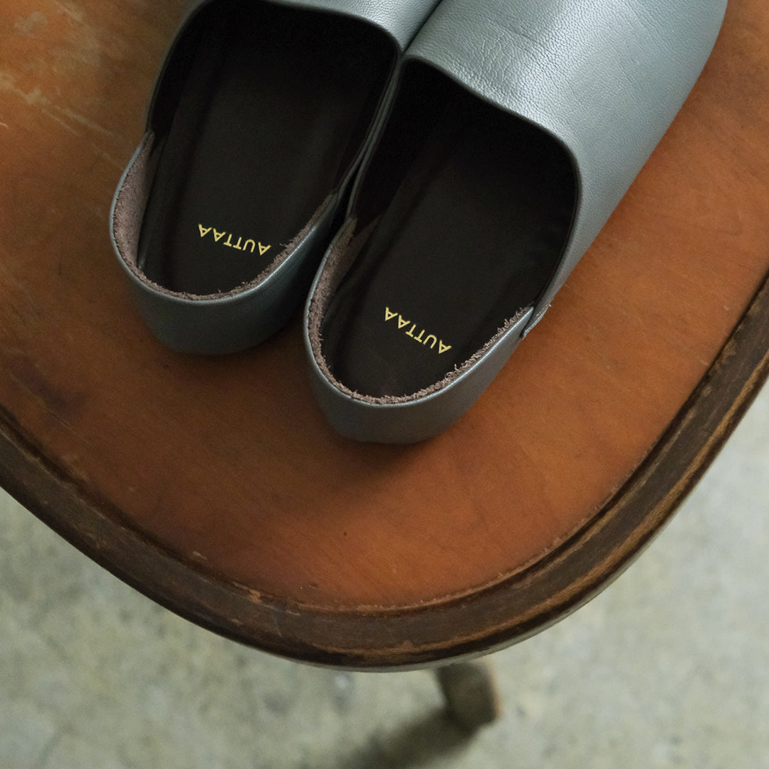 シューズブランド「AUTTAA」(アウッタ)による屋外でも履けるルームシューズのオーダーを承ります。このページでは細かな肌目が特徴のgoat leatherをご紹介します。