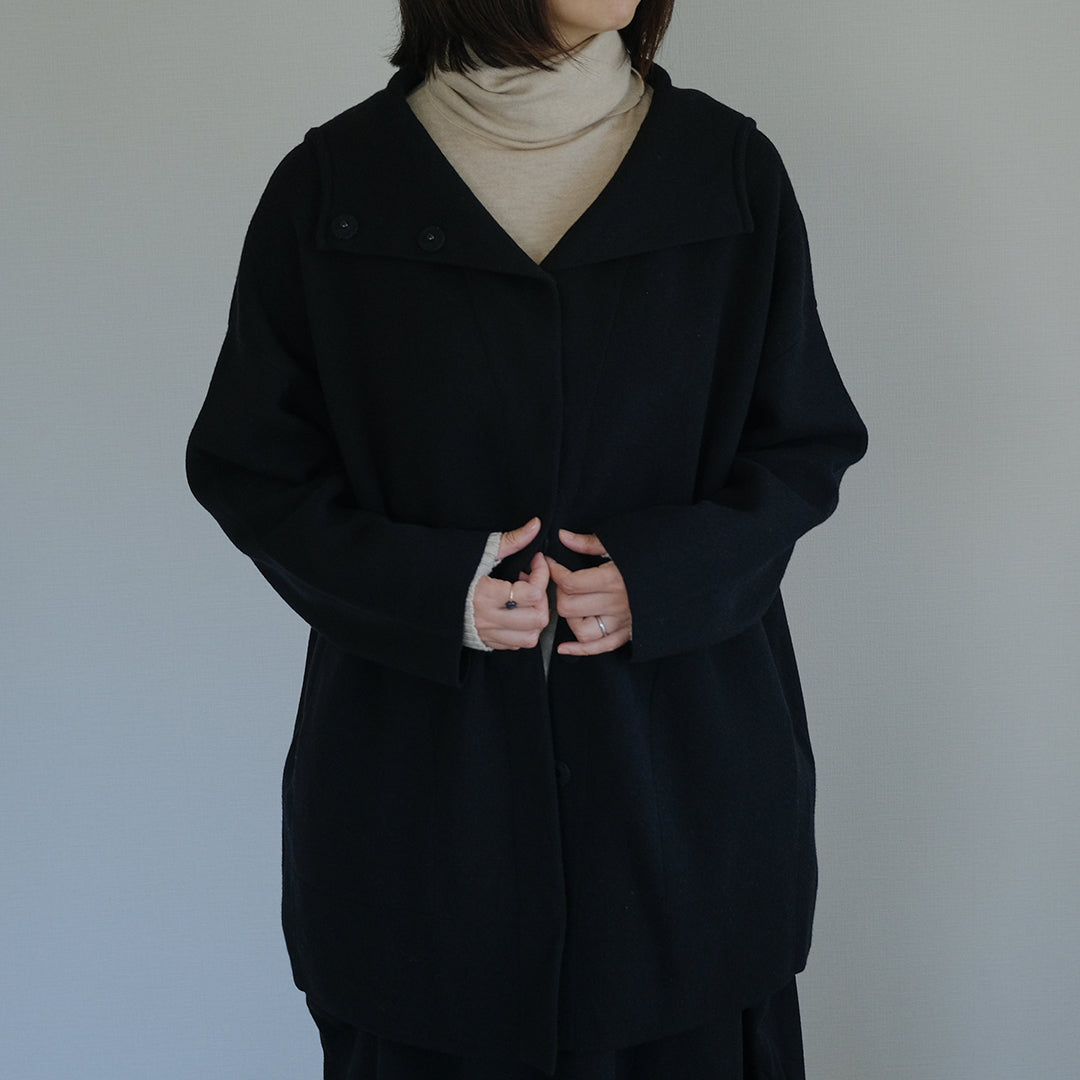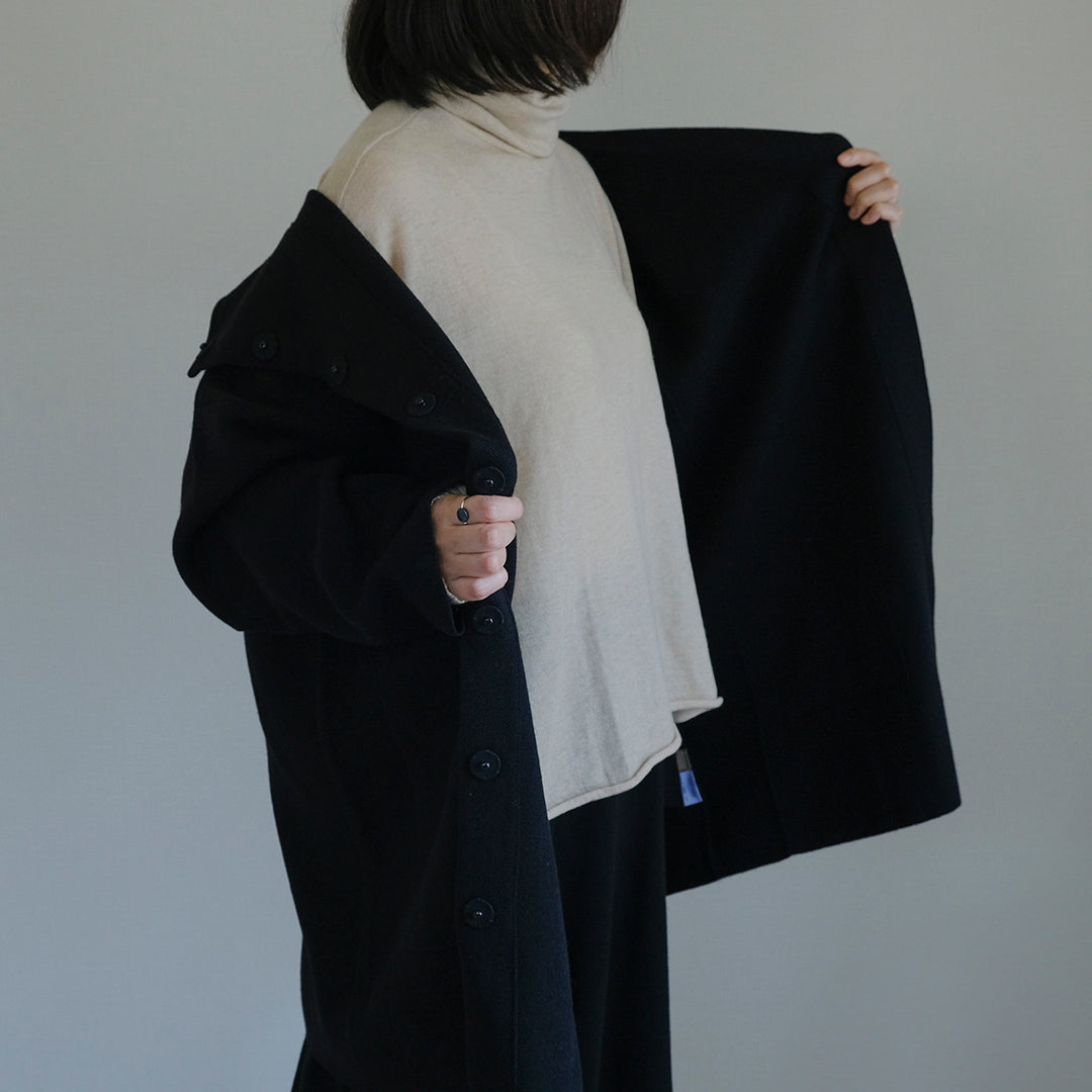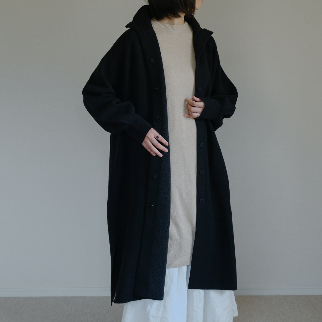 ミドル丈の軽やかさが今の冬のスタイルにフィットする、カシミヤコート。ニットならではのやわらかさと、きれいなフォルムを兼ね備えたFREEMAN--B らしさを感じさせるアウターです。