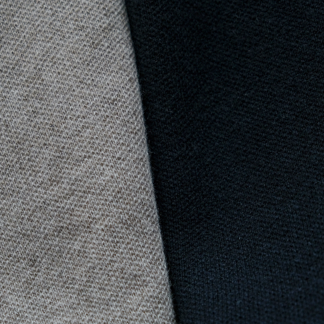 色は、原毛のままのロウカシミヤの糸を使った「ブラウン」と、きりっとモダンな雰囲気が漂う「ブラック」の2色。やや細めの糸を贅沢にたっぷりと使っています。