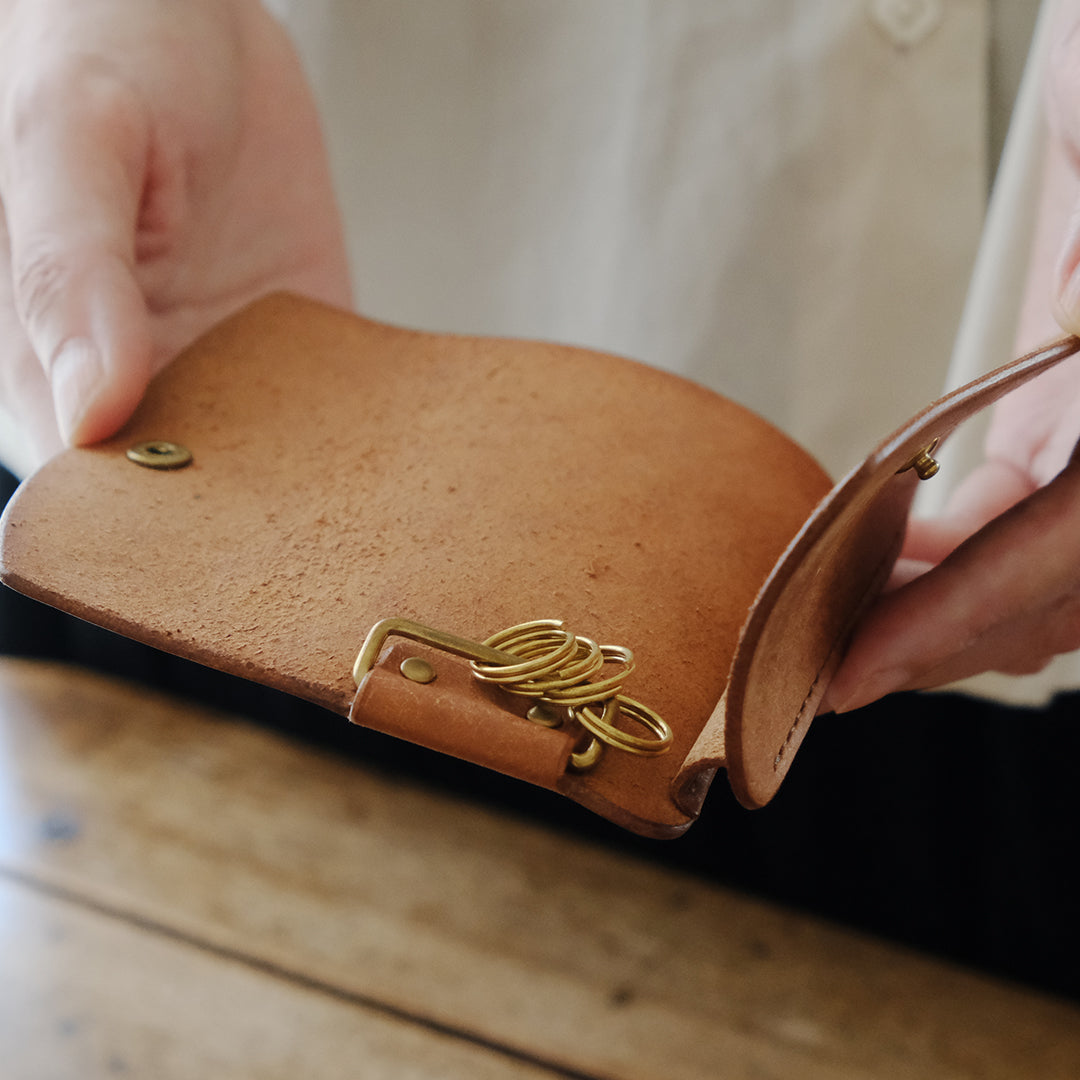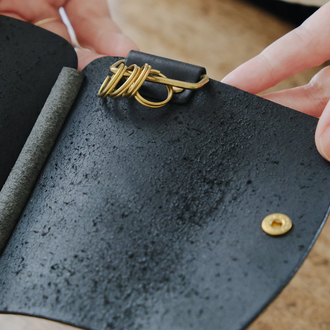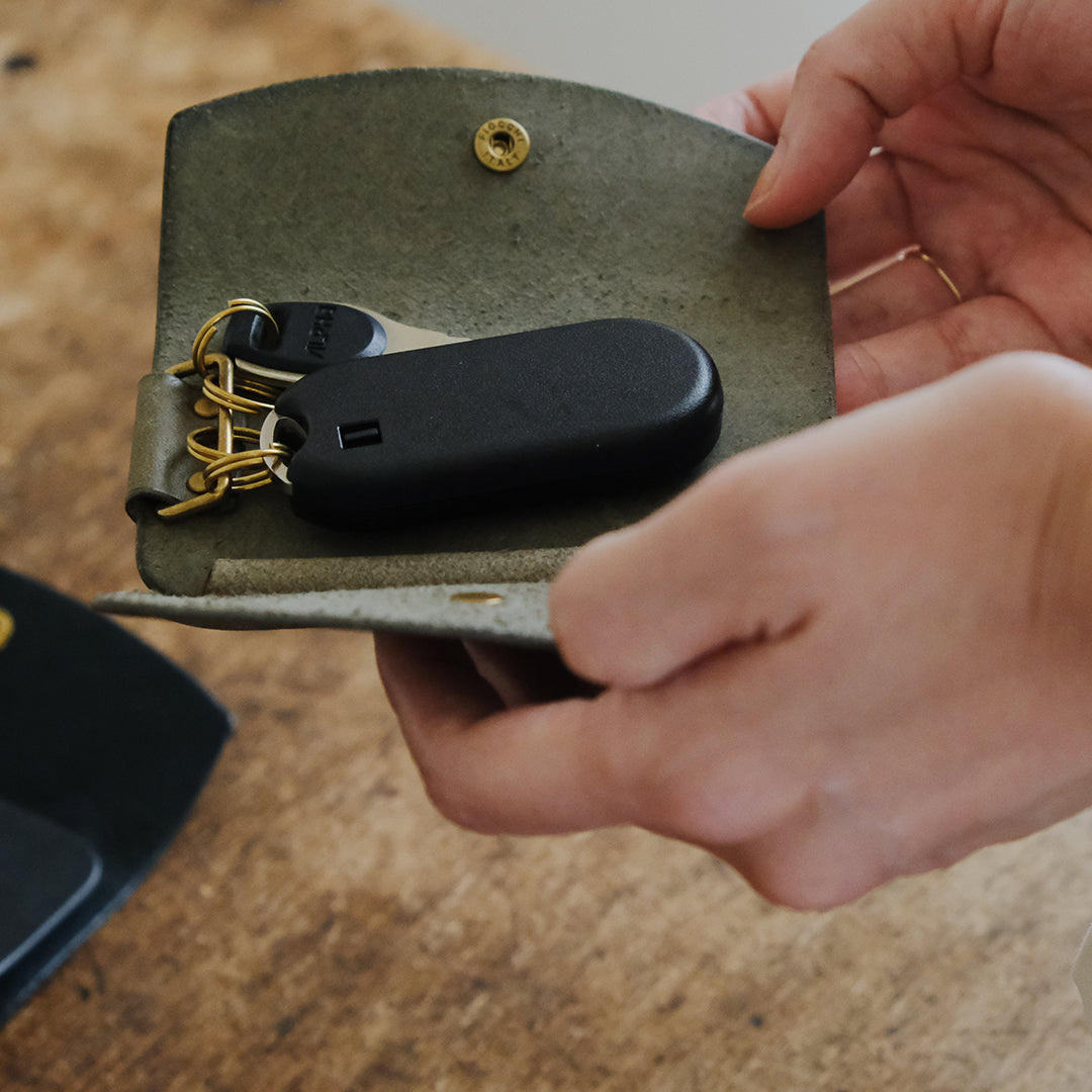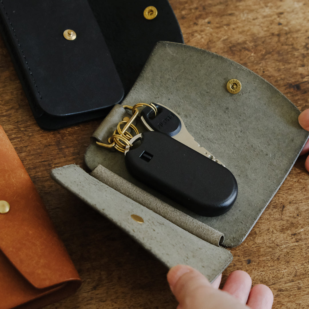 リクエストから誕生したスマートキー対応のキーケース。オリジナル構造の金具が大切な鍵を守ります。