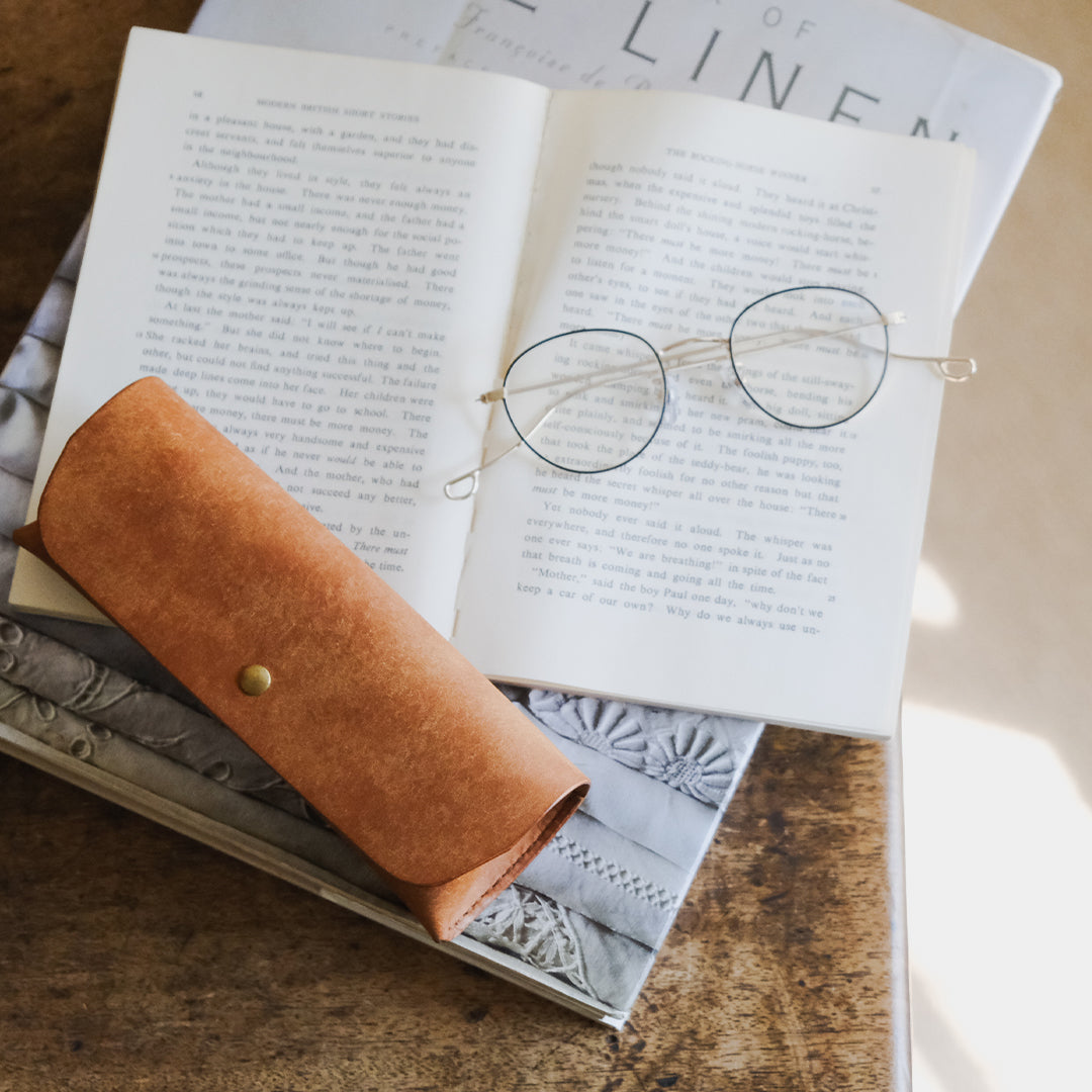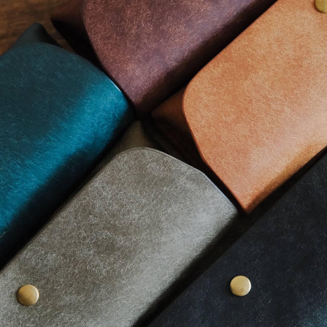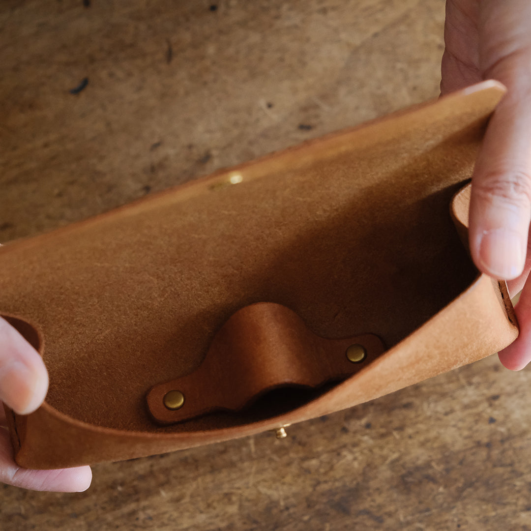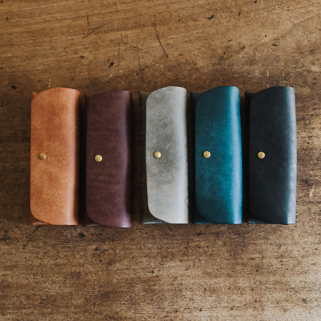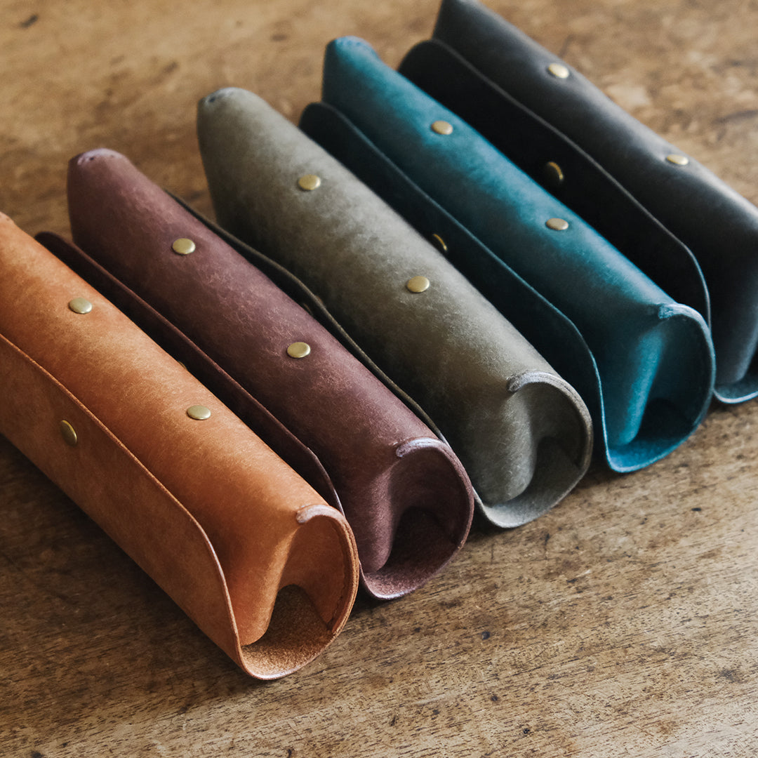 一枚革を手縫いで仕立てた、JOURNEYのメガネケース。メガネをしっかり守りつつ、ふっくらしたかたちで軽やかに持ち歩けます。使うほどに革の風合いが増し、愛着を持って使える一品です。
